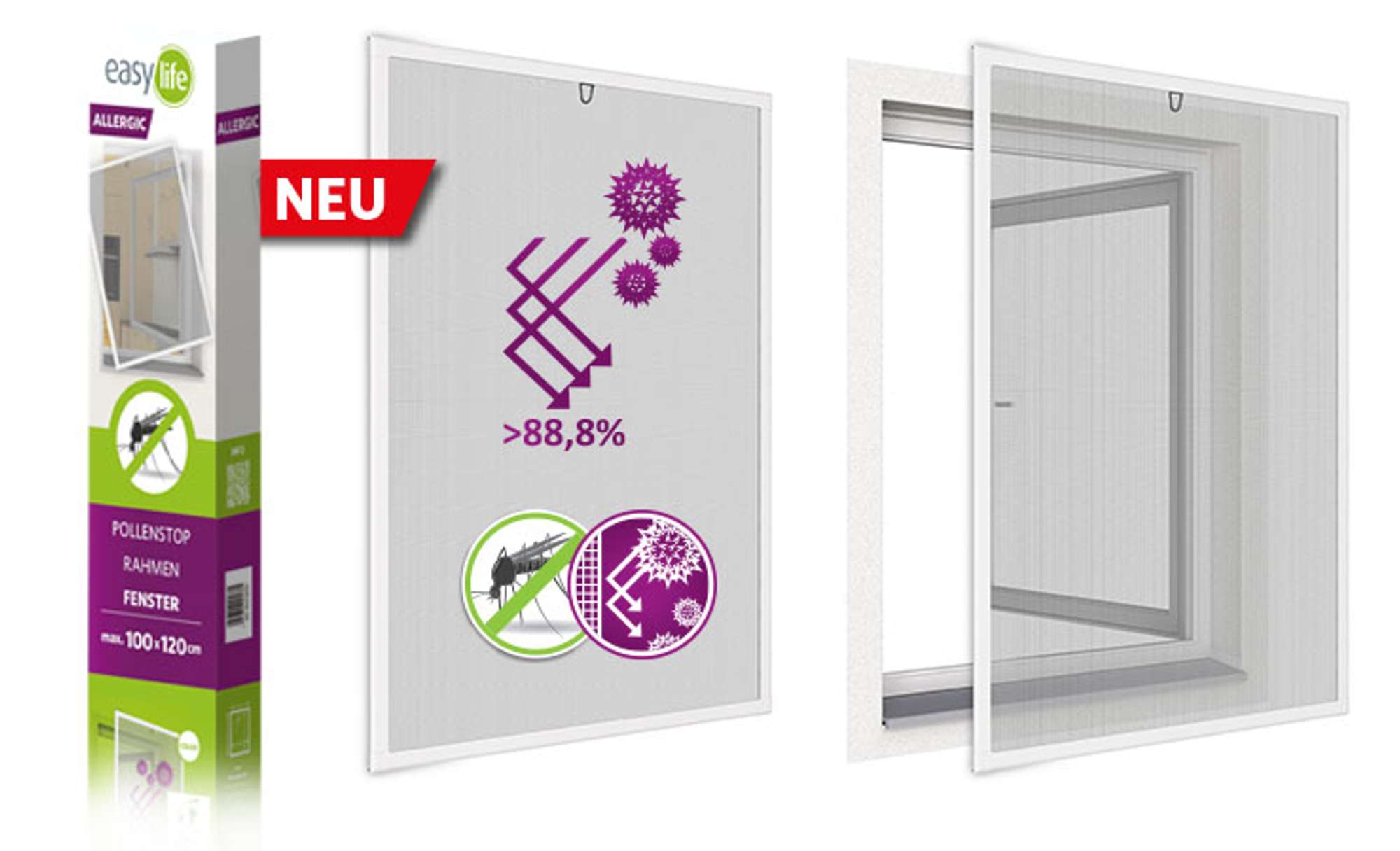Kombiniert alle Vorteile des Alu-Rahmen-Systems easyLINE 2.0 und des Spezialgewebes ALLERGIC.