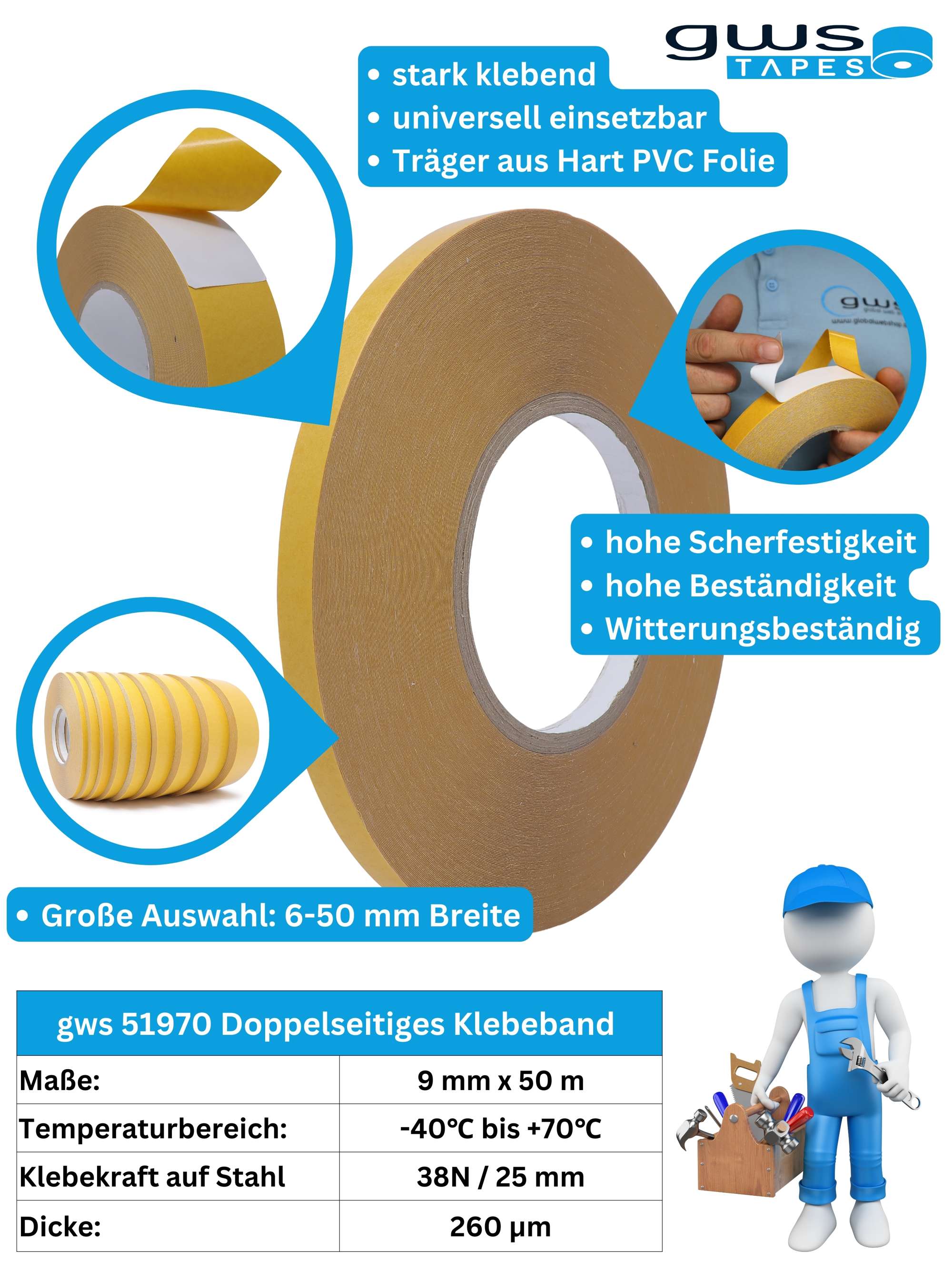 gws Fix 51970 doppelseitiges Klebeband, 50 m x 9 mm