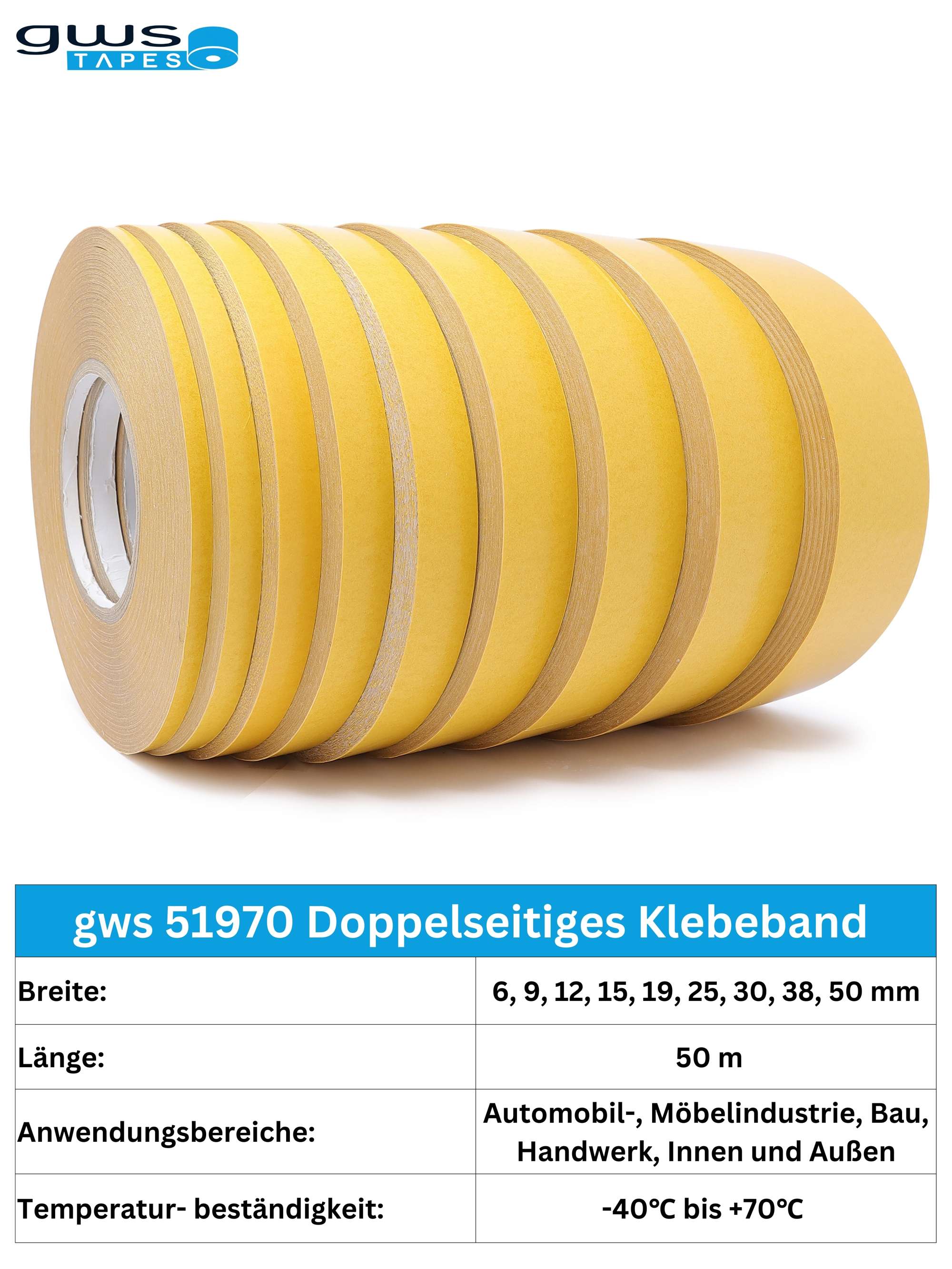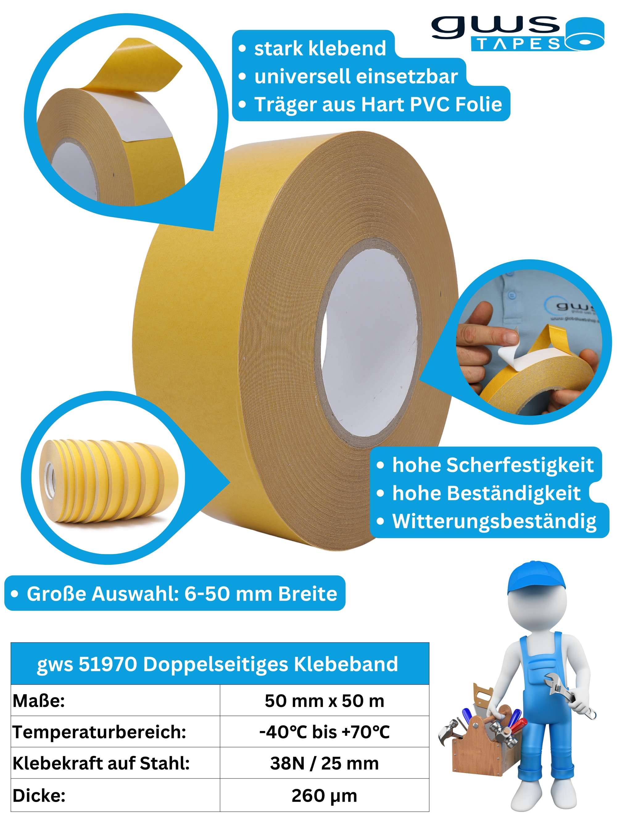 gws Fix 51970 doppelseitiges Klebeband, 50 m x 50 mm