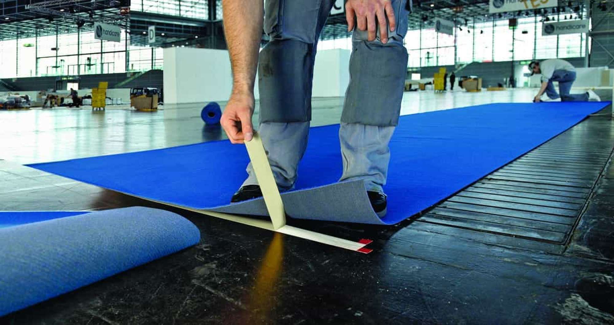 tesafix® 4939 ist ein doppelseitiges Verlegeband mit einem starken PET-Gewebe-Träger und einer Synthesekautschuk-Klebmasse mit differenzierten Klebkräften (stark zum Teppich, schwächer zum Untergrund).