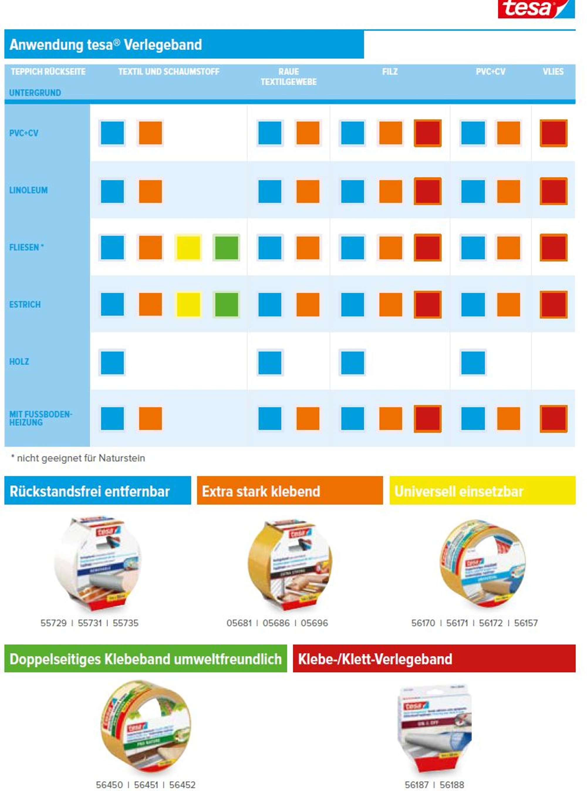 - Teppichklebeband für alle Teppich- und PVC- Bodenbeläge.