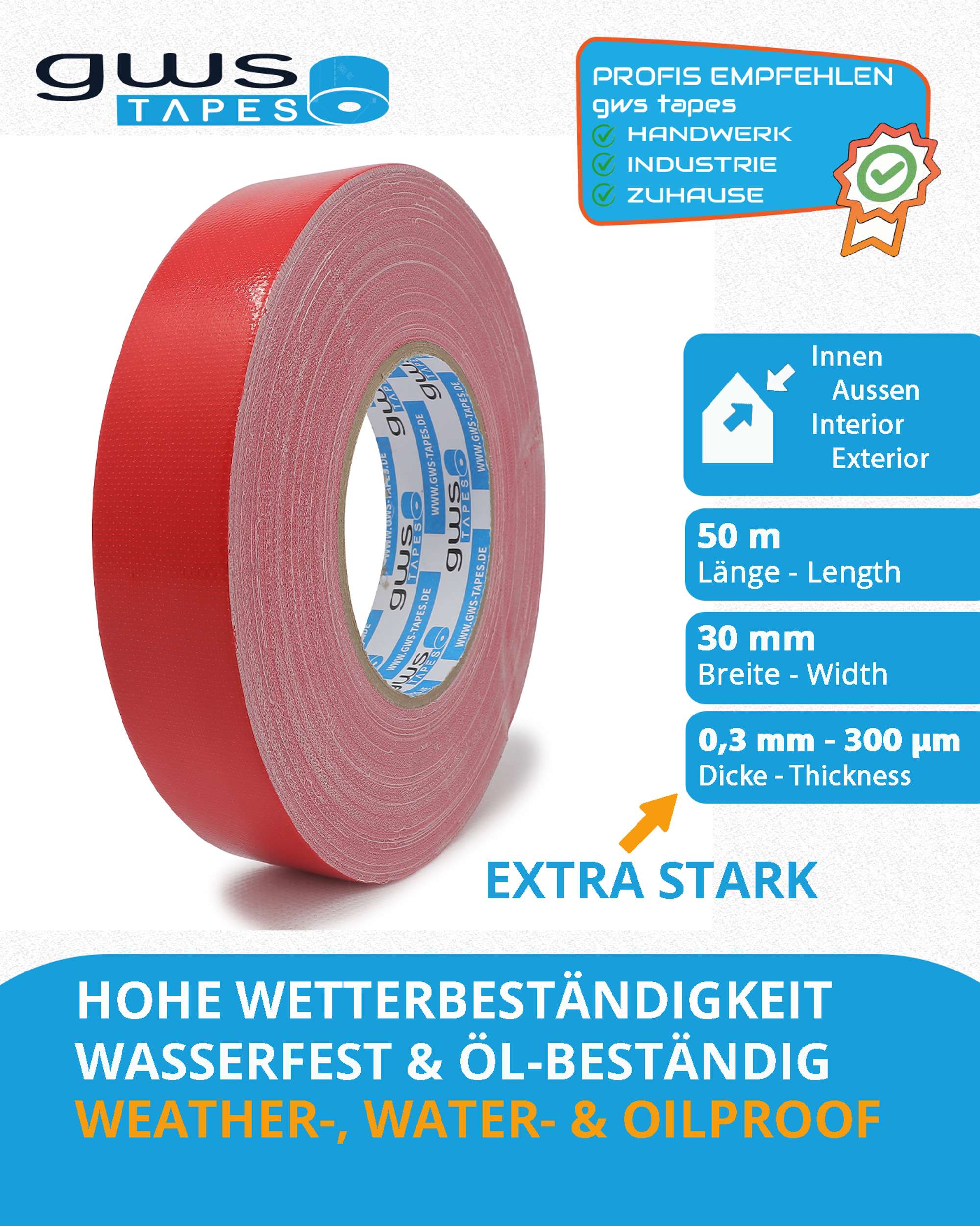 - PREMIUM QUALITÄT: Das hochwertige gws Premium Gewebeband begeistert mit seiner hohen Beständigkeit und seiner erstklassigen Klebkraft. Durch seine Beschriftbarkeit eignet es sich auch hervorragend als Markierungsband. Wählen Sie zwischen verschiedenen Farben und Längen/Breiten!
