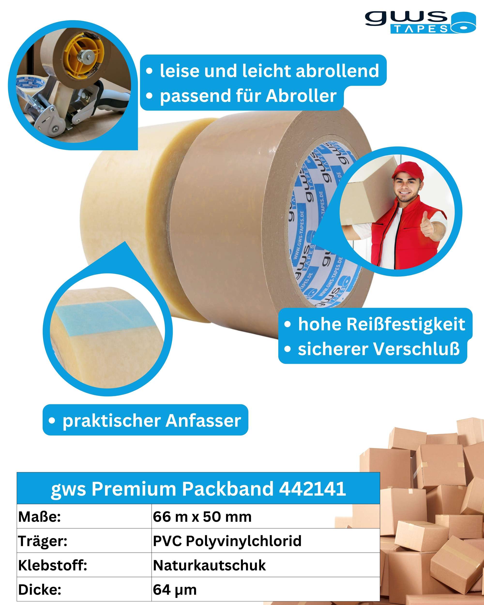 gws 442141 PVC Packband Premium reißfest, 66 m x 50 mm, braun
