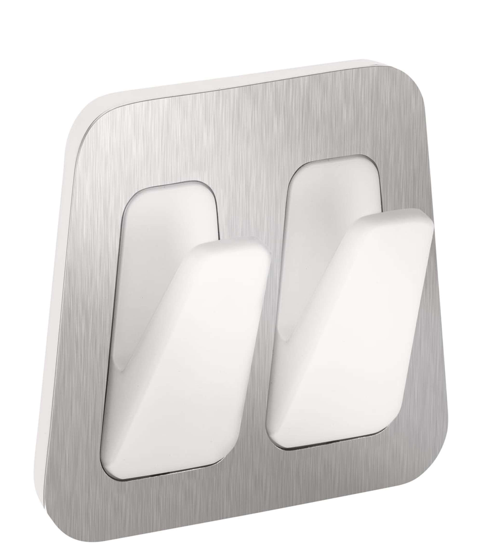 tesa Powerstrips Doppelhaken Waterproof Metall-Kunststoff 59785, 1 Doppelhaken + 2 Strips Large, metallic-weiß