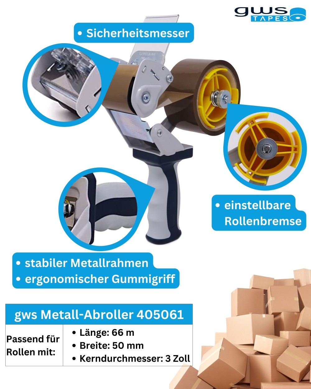 gws 405061 Packband Handabroller mit Sicherheitsmesser, bis 50 mm