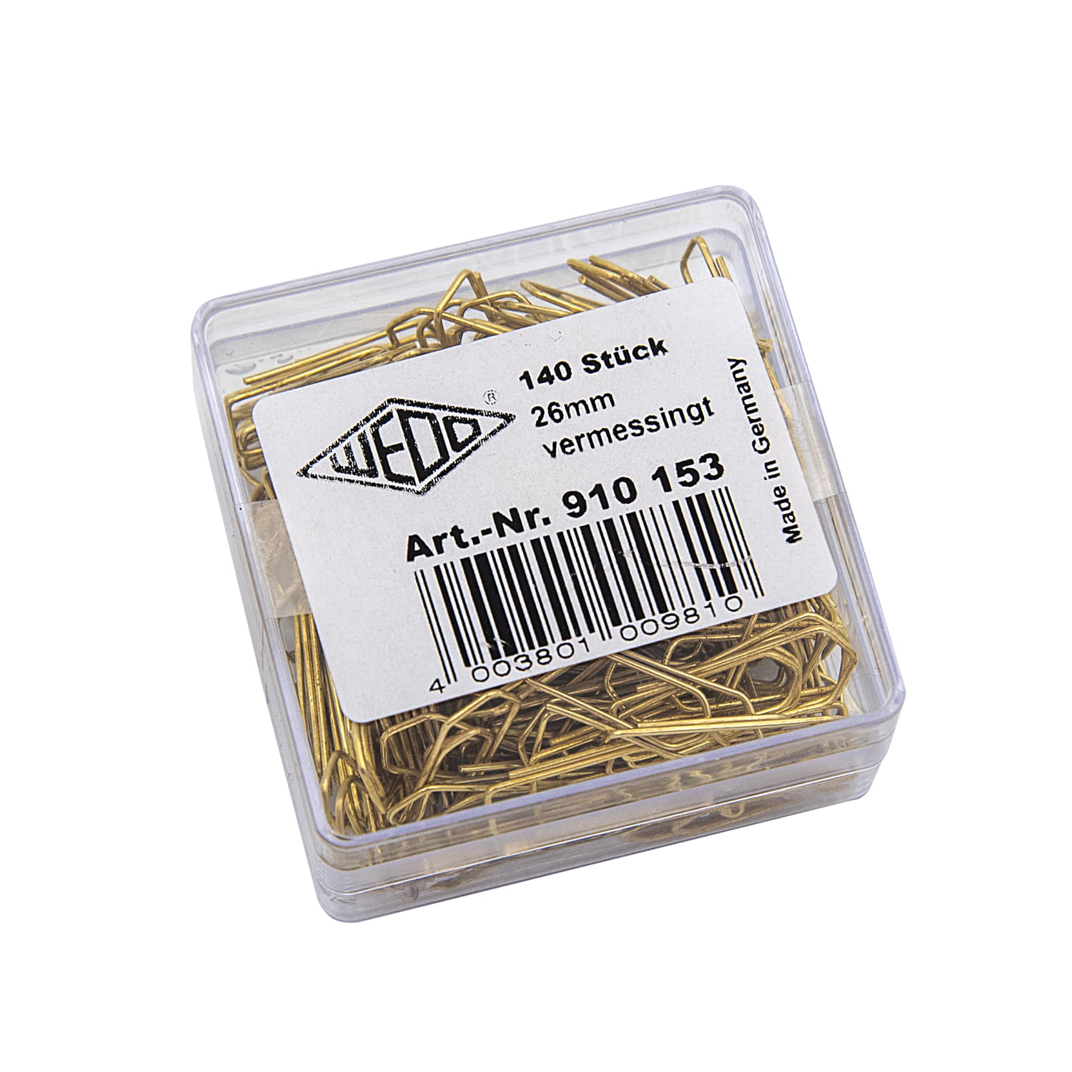WEDO Büroklammern 26 mm Aus Metall, messingfarbig. 140 Stück in praktischer Klarsichtdose verpackt.