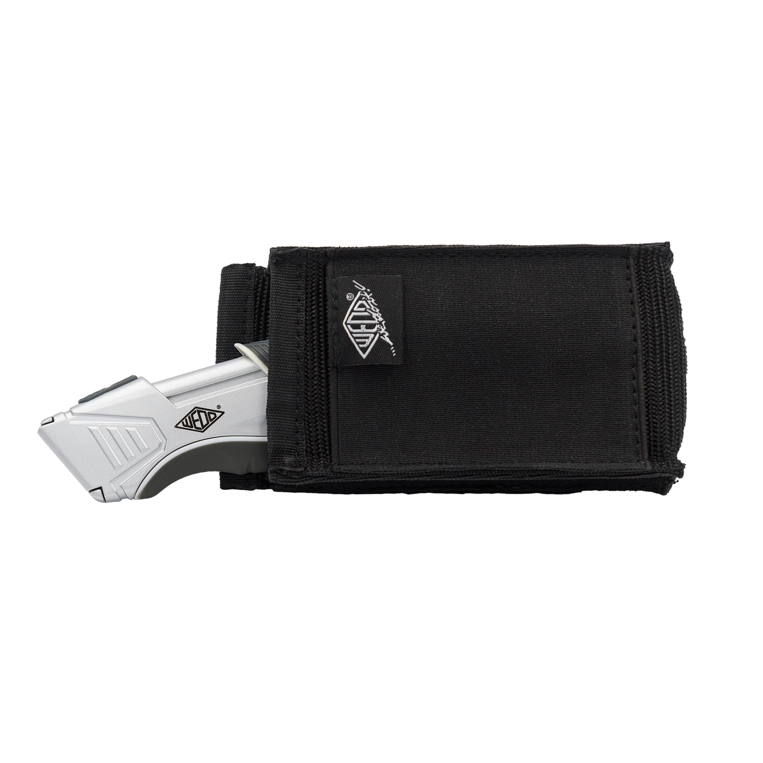 WEDO Cutter-Gürteltasche für alle Cutter passend, mit Befestigungsclip für Gürtel oder Hosenbund, aus strapazierfähigem Polyestergewebe mit verstärkten Kanten. Zwei Innenfächer, ein flaches Außenfach für Klingenmagazin oder ähnliches. Farbe: schwarz, Maße: 6,80 x 3,90 x 13,40 cm, max. Breite für Gürtel zum Einziehen: 4,2 cm, Lieferung mit Hangtag