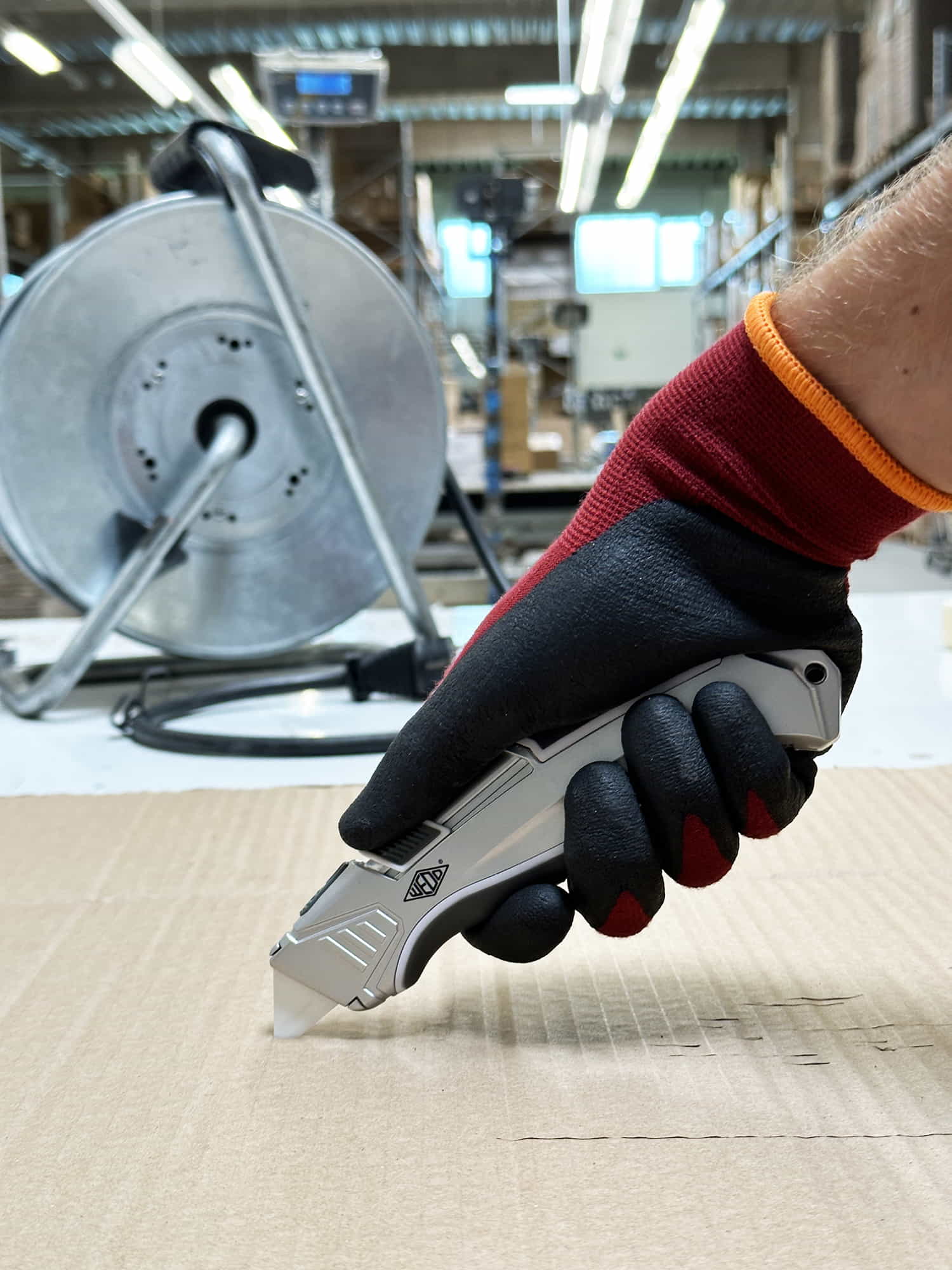 WEDO CERA-Safeline Safety-Cutter ALU im leichten Aluminium-Gehäuse mit Keramikklingen. Die federbelastete Trapezklinge zieht sich nach dem Schnitt automatisch zurück (Schieber während des Schneidens nicht festhalten). Das robuste Aluminiumgehäuse mit gummierter Griffzone liegt leicht und sicher in der Hand. Durch die Positionierung des Klingenschiebers auf dem Messerrücken kann der Cutter sowohl von Rechts- als auch von Linkshändern benutzt werden. Leichter Klingenwechsel aus dem integrierten Magazin für 3 Ersatzklingen. TÜV/GS-geprüft. Maße: ca. 16,5 x 2,0 x 4,0 cm, Gewicht: ca. 106 g, Farbe: silber/anthrazit/weiß. Lieferung mit einer Ersatzklinge im integrierten Magazin. Vorteile von Keramikklingen: bleiben bis zu 10x länger scharf als Stahl - sicherer als Metallklingen - rostfrei, ohne Ölbeschichtung - säuregeschützt, chemisch neutral - funkenfrei, nicht leitend, unmagnetisch.