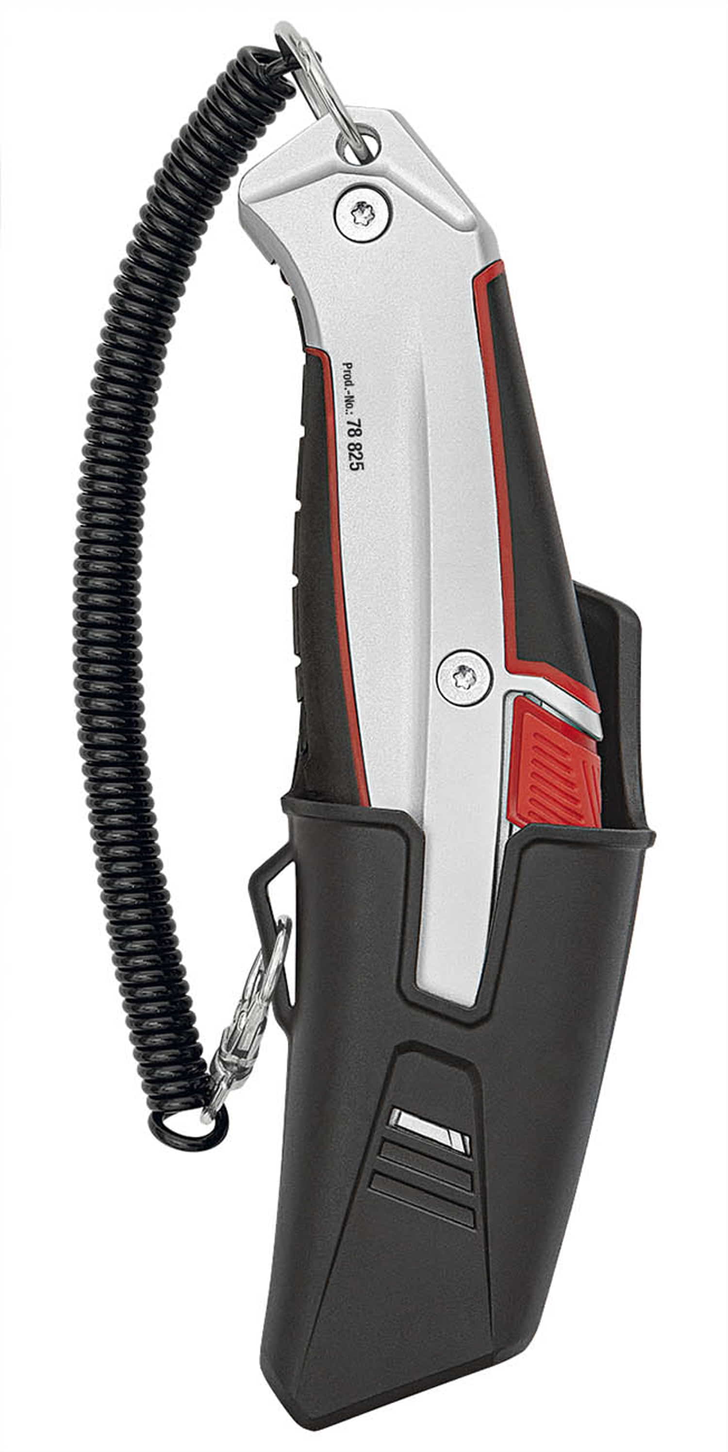 WEDO Safety-Cutter ALU im leichten Aluminium-Gehäuse mit automatischem Klingenrückzug. Die federbelastete Trapezklinge zieht sich nach dem Schnitt automatisch zurück (Schieber während des Schneidens nicht festhalten). Das robuste Aluminiumgehäuse mit gummierter Griffzone liegt leicht und sicher in der Hand. Durch die Positionierung des Klingenschiebers auf dem Messerrücken kann der Cutter sowohl von Rechts- als auch von Linkshändern benutzt werden. Leichter Klingenwechsel aus dem integrierten Magazin für 3 Ersatzklingen. TÜV/GS-geprüft. Maße: ca. 16,5 x 2,0 x 4,0 cm, Gewicht: ca. 108 g, Farbe: silber/schwarz/rot. Lieferung mit einer hochwertigen Trapez-Ersatzklinge aus SK5-Carbonstahl im integrierten Magazin.