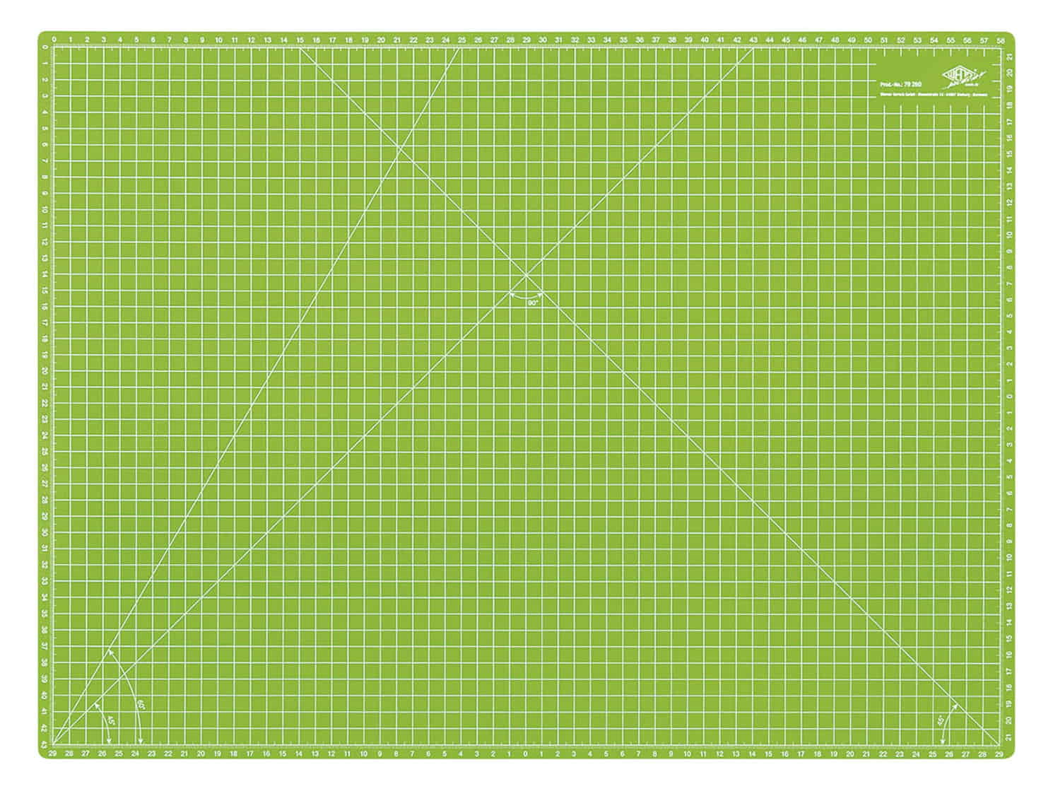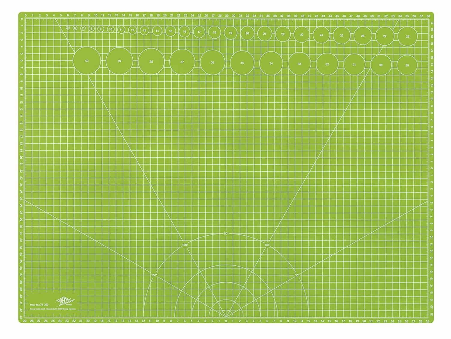 WEDO Schneide- und Bastelmatte COMFORTLINE, A2, selbstschließend. Die robuste Schneidematte ist beidseitig bedruckt mit cm-Raster, verschiedenen Winkeln und Kreisen. Der 3-lagige Aufbau mit speziellem Innenkern und selbstschließender Oberfläche erlaubt präzise, spurlose Schnitte und schont die Klingenschärfe. Maße: 60 x 45 cm (A2), Stärke: 3 mm, Skalierung 58 x 43 cm. Farbe: apfelgrün