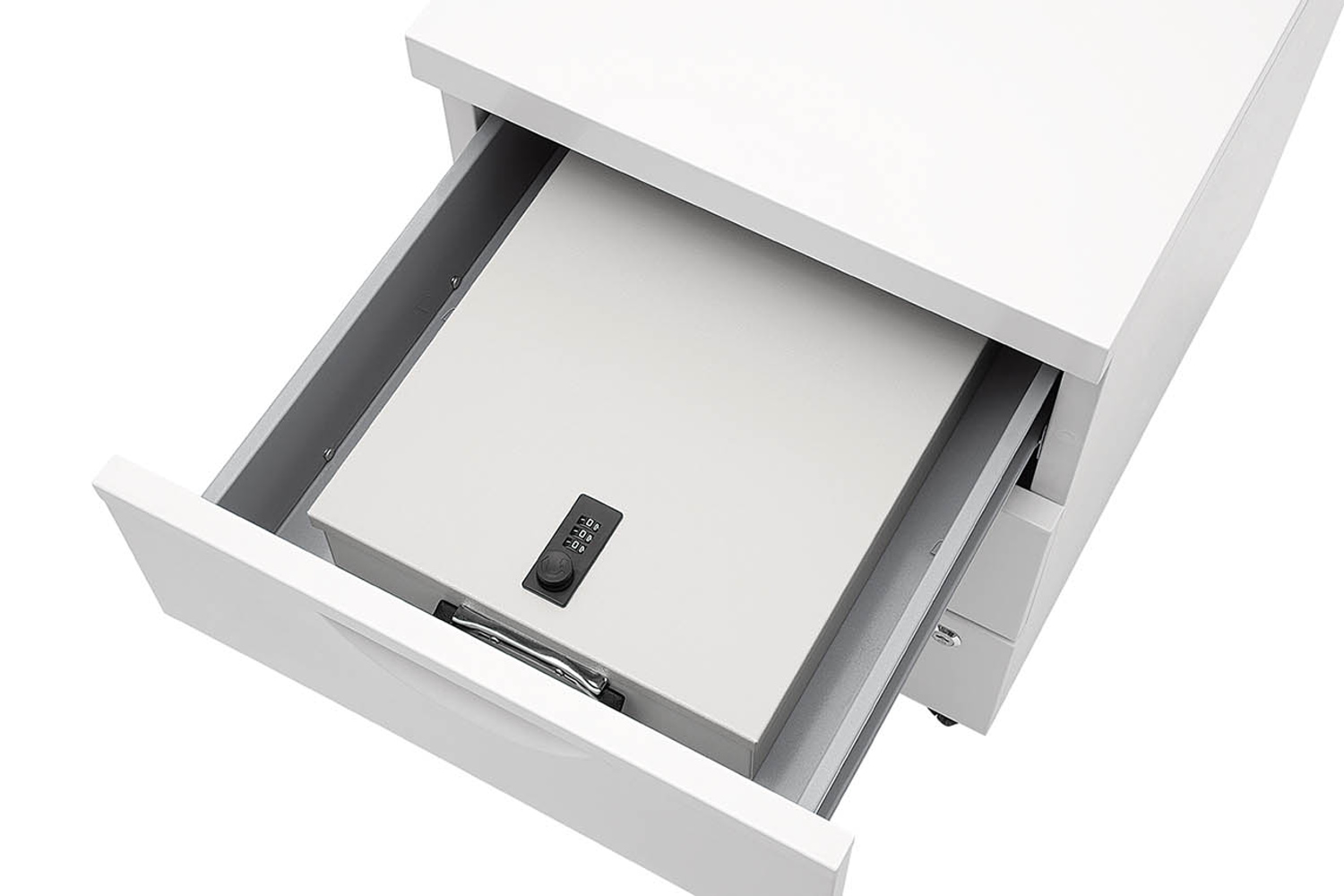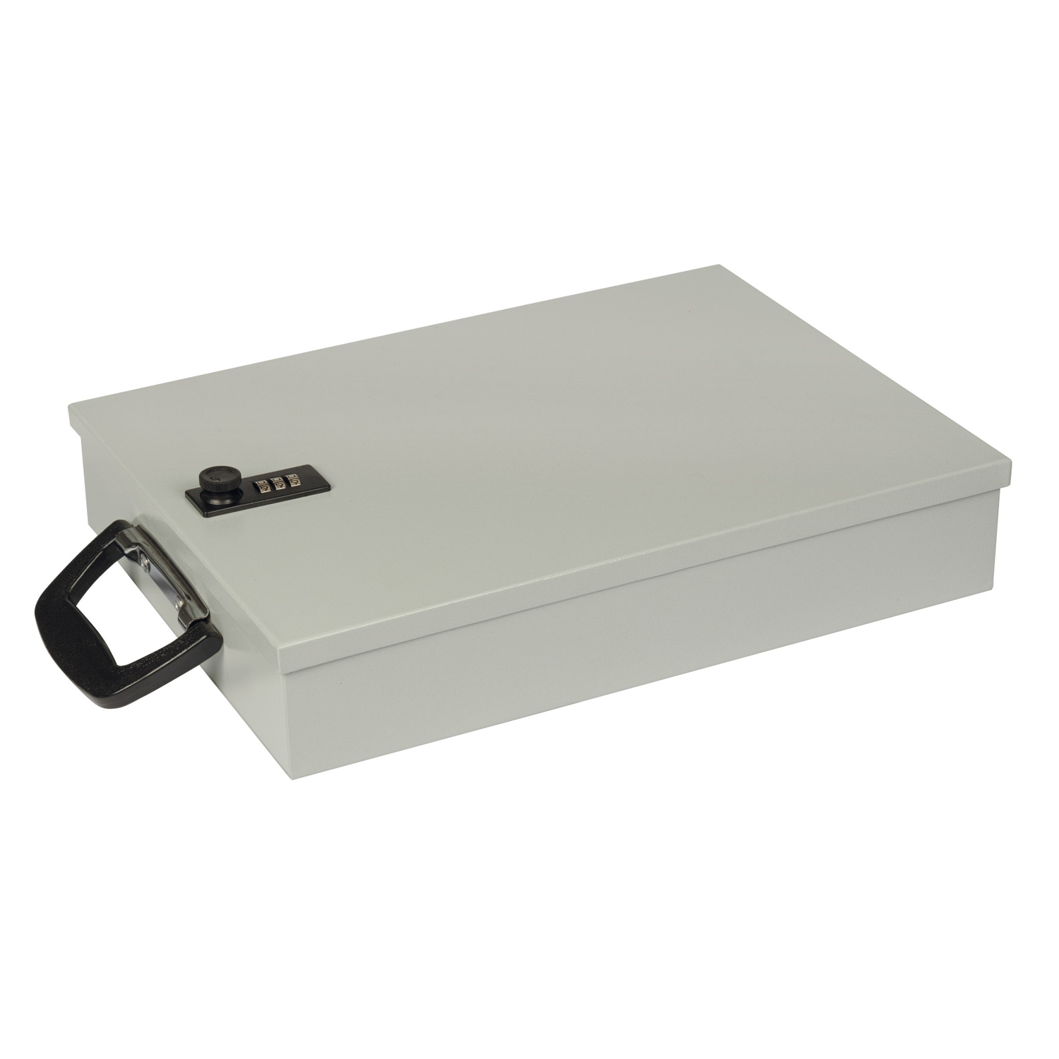 WEDO Dokumenten-Kassette DIN A4 mit Zahlenschloss. Kassette mit Koffergriff zur Aufbewahrung wichtiger Unterlagen und Verträge. Gefertigt aus pulverbeschichtetem Stahlblech mit mattierter, unempfindlicher Oberfläche. Zwei Bohrlöcher im Boden erlauben eine Schraubbefestigung in der Schublade. Das Sicherheitsschloss ist über einen 3-stelligen Zahlencode individuell einstellbar und kann jederzeit korrigiert werden. Größe: 35,5 x 26,0 x 6,7 cm, Innenmaße: 33,9 x 24,2 x 6,6 cm. Farbe: lichtgrau. Lieferung im Einzelkarton.