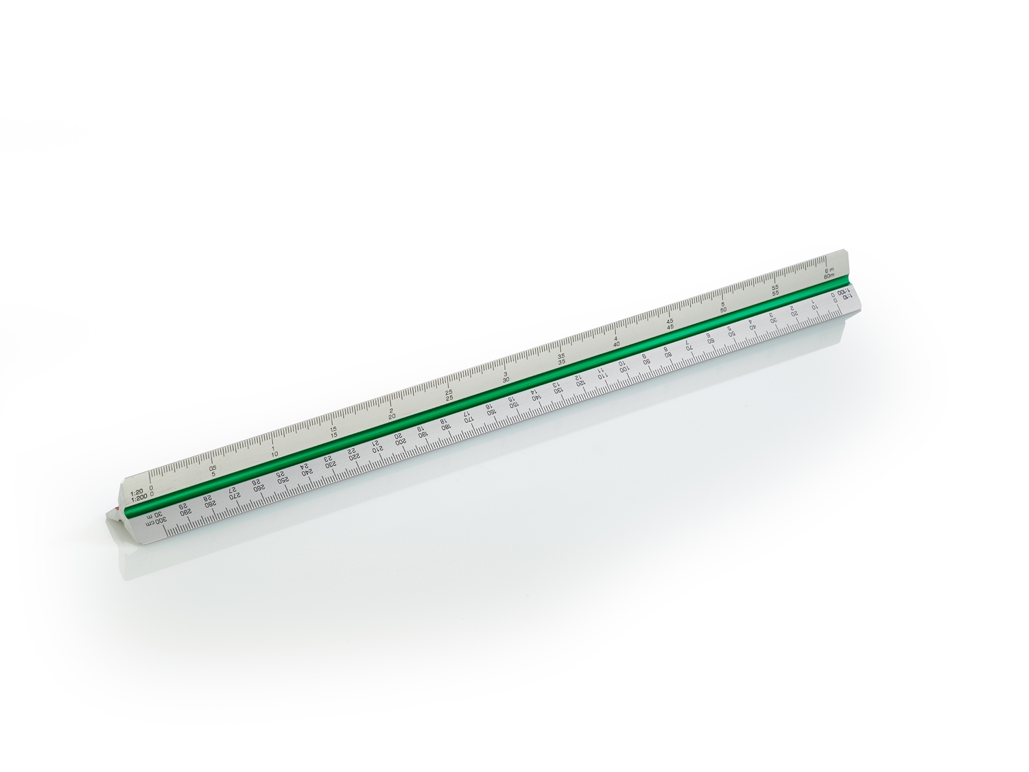 WEDO Dreikantmaßstab ALU Architekt, 30 cm aus Aluminium mit Hohlkehlen in Silber, Grün und Rot sowie Teilung für Architekten, Maßstab: 1:10 und 1:100 / 1:20 und 1:200 / 1:25 und 1: 250 / 1:50 und 1:500 / 1:75 und 1:750 / 1:125 und 1:1250. Maße: ca. 32,2 x 2,4 x 2,1 cm. Gewicht: ca. 108 g. Verpackung: Kunststoffköcher mit Hängeöse: ca. 32,8 x 3 x 2,7 cm.