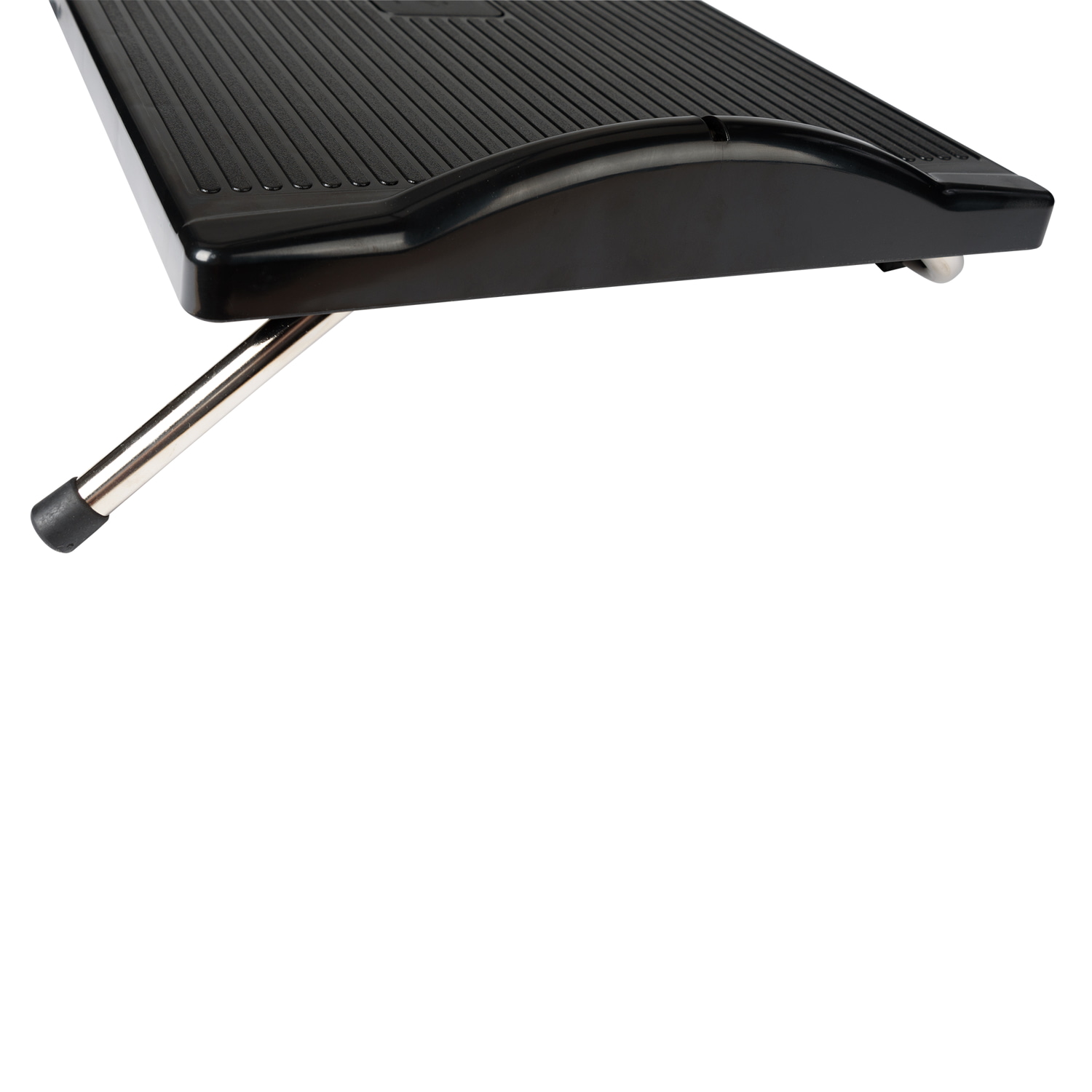 WEDO Fußstütze SWING in schwarz/chrom. Design swingt bei dieser Fußstütze mit. Der vernickelte Stahlbügel erlaubt ein stufenloses Verstellen der Trittfläche durch den sanften Druck Ihres Fußes. Die aufgeraute Oberfläche der Trittplatte aus ABS (43,0 x 30,0 cm) verhindert ein Abrutschen der Schuhe. 3 Jahre Garantie. (Nicht vorgesehen für den Einbau eines Fußschalters.) Höhenverstellung vorne und hinten minimal 20 mm, maximal 110 mm.