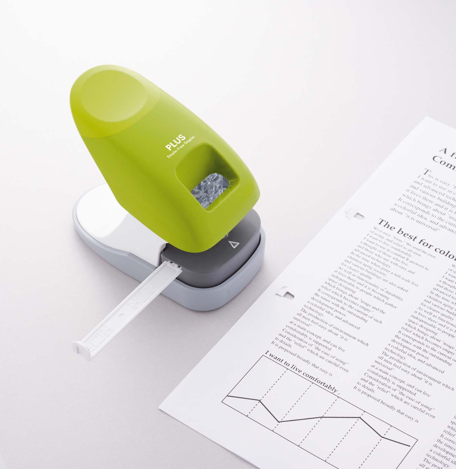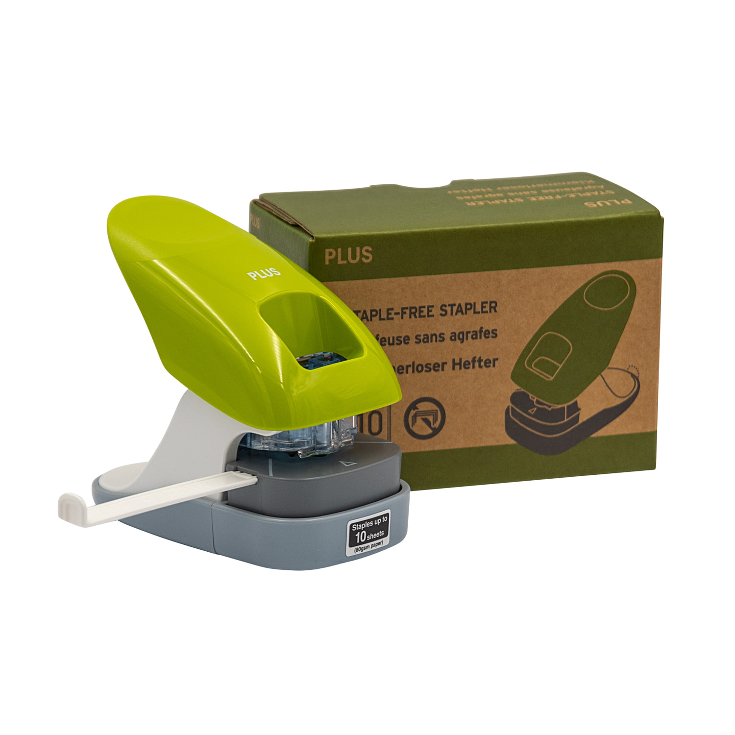 WEDO Klammerloser Tischhefter, heftet bis zu zehn Blatt Papier (80 g/qm) mühelos zusammen und kann - dank integriertem Abstandsmesser - auch zur 2-fach-Lochung und Ablage von A4-Dokumenten eingesetzt werden. Mit kraftunterstützendem Mechanismus und pfiffiger Funktionsweise: Eine vom Hefter gestanzte Papierlasche wird automatisch durch einen ebenfalls gestanzten Schlitz gezogen. So werden bis zu 10 Blätter ohne Klammern zusammengeheftet. Durch das transparente Sichtfenster ist die Heftung gut zu positionieren. Wird ein DIN A4-Dokument mit Hilfe des Abstandsmessers einmal von oben und einmal von unten geheftet, können die gebundenen Seiten direkt abgeheftet werden. Der Abstandsmesser wird anschließend platzsparend in das Gerät eingeschoben. Weitere Vorteile: kein Metall im Aktenvernichter, kostensparend, da ohne Verbrauchsmaterial. Gehäuse aus Recycling-Kunststoff. Maße: 13,0 x 7,0 x 11,0 cm. Lieferung im bebilderten Karton mit Bedienungsanleitung. Farbe: Hellgrün.