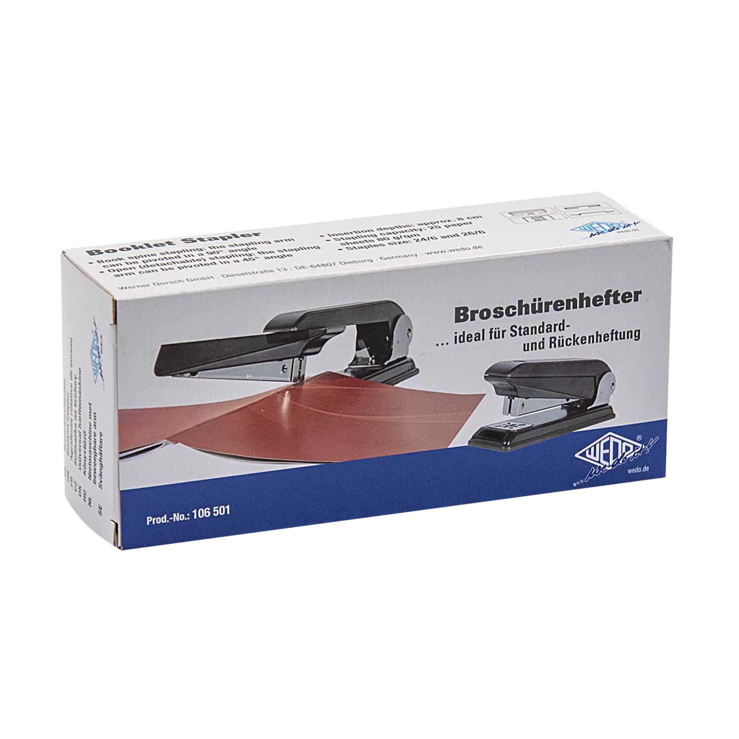 WEDO Universall-Hefter 24/6 schwarz. Stabiler Tischhefter für offenes- und geschlossenes Heften sowie Tackern. Durch das seitliche Ausschwenken des Hefters können auch Zeitungen und Broschüren mühelos geheftet werden. Größe: 14,7 x 4,0 x 6,0 cm.