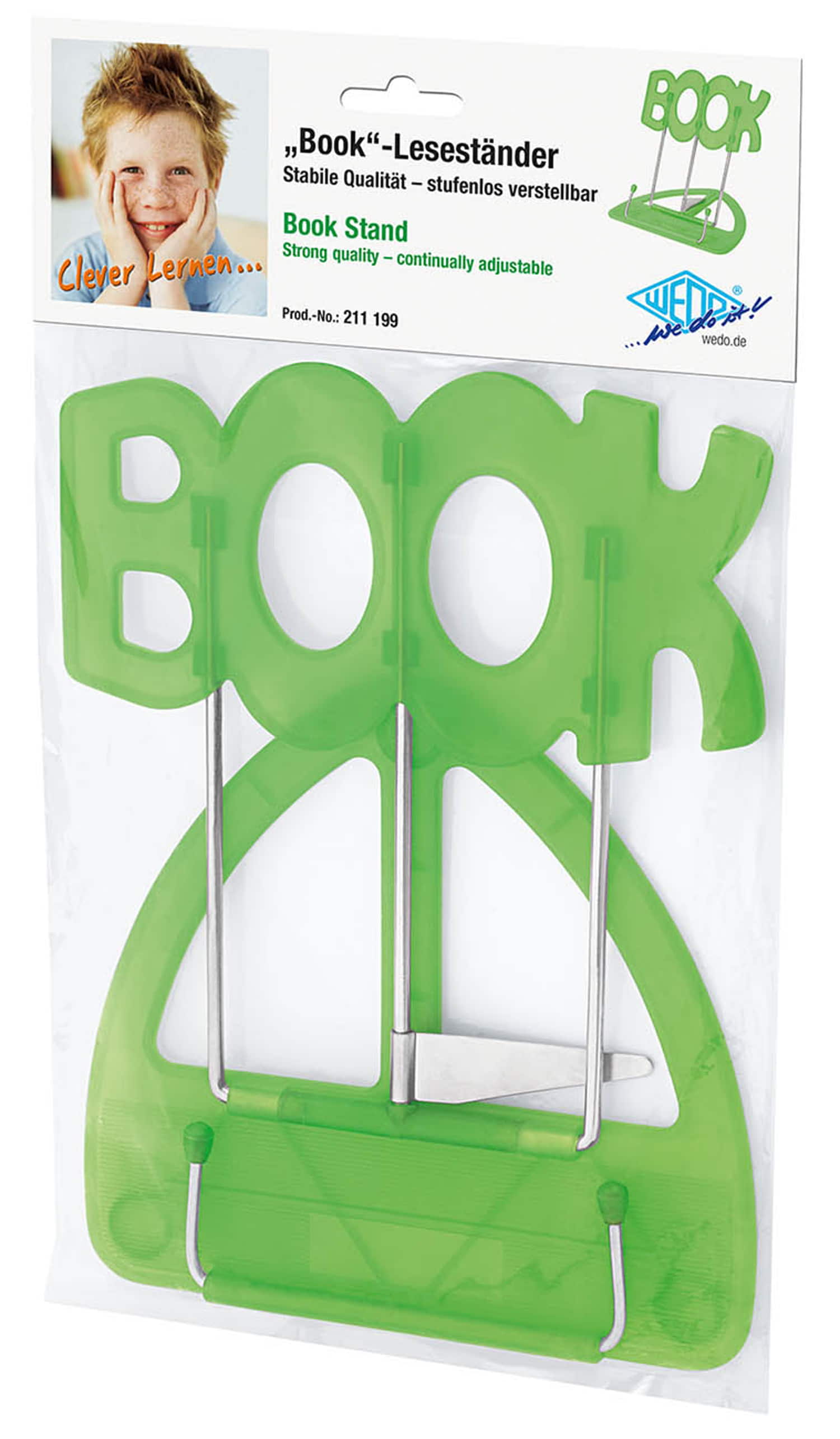 WEDO Leseständer BOOK, farbig sortiert. Der bewährte BOOK-Leseständer ist in drei neuen transluzenten Farben erhältlich. Gefertigt aus stabilem Kunststoff mit vernickelten Bügeln. Die Schräglage ist stufenlos verstellbar. Lieferung in SB-Verpackung mit Euroloch. Maße: ca. 23,5 x 17,5 x 1,0 cm (zusammengeklappt). Sortiert in 3 Farben (6x blau, 4x rot und 2x apfelgrün).