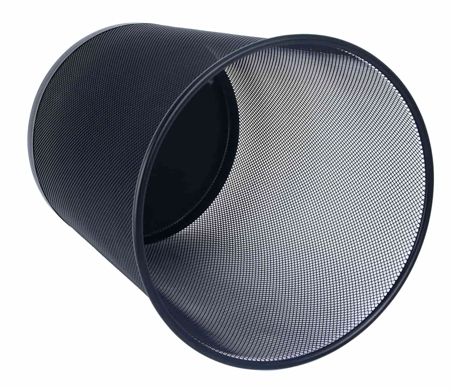 WEDO Papierkorb OFFICE, schwarz, aus pulverbeschichtetem Drahtmetall mit 18 Litern Fassungsvermögen. Maße: Ø oben 29,5 cm, Ø unten 24,0 cm, Höhe 35,0 cm. Lieferung im Karton.