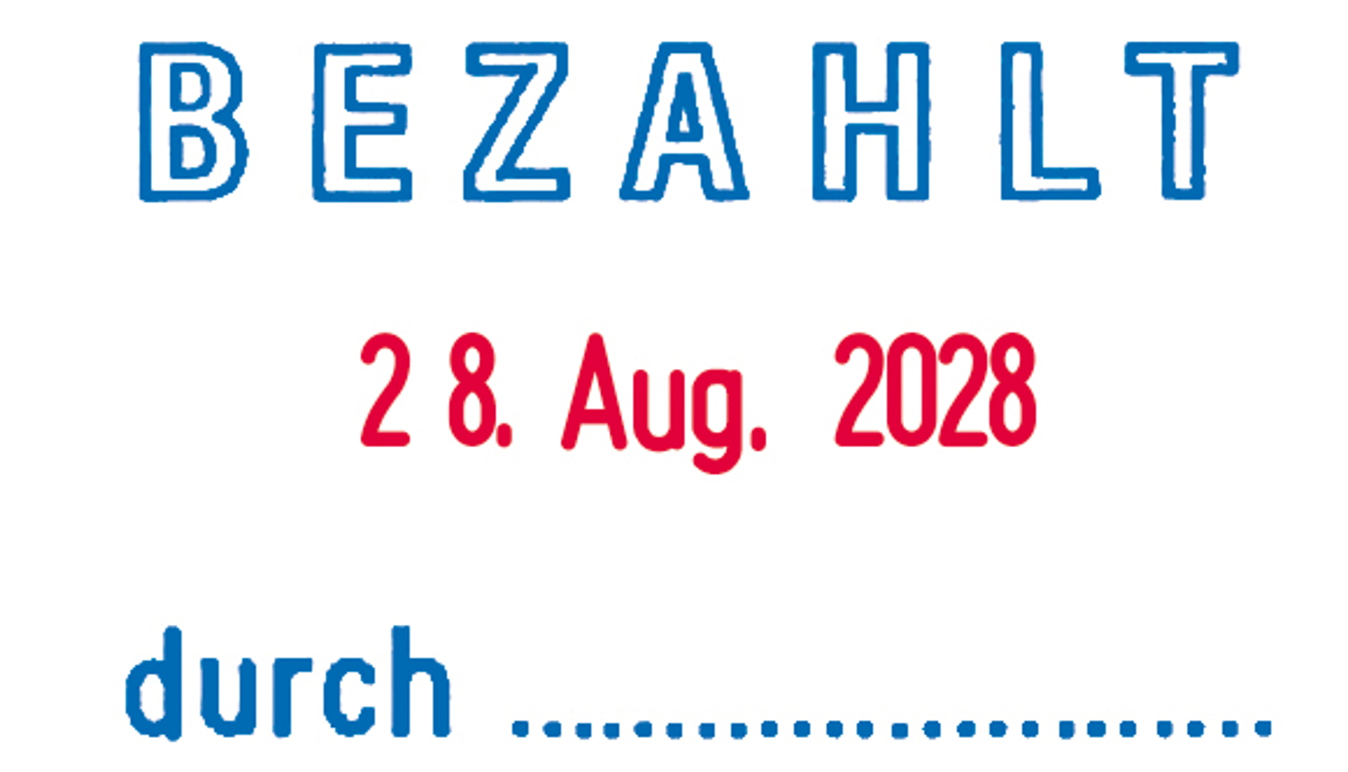 TRODAT Professional 5440/L Textplattenstempel mit Datum (Schrifthöhe 4 mm, Monat in Buchstaben). Dieser selbstfärbende Stativ-Metallstempel aus Edelstahl kann individuell mit den beiliegenden Texten EINGEGANGEN oder BEZAHLT versehen werden. Die Datumsverstellung erfolgt mittels Kunststoffrädern. Die patentierten High-Performance Datumsbänder sowie die Bandabdeckung garantieren eine saubere Handhabung bei der Datumsverstellung. Das mitgelieferte trodatkissen ist zweifarbig. Der Text wird blau und das Datum rot dargestellt. Größe 8,3 x 4,7 x 14,8 cm, Abdruckgröße 4,2 x 2,6 cm. 10 Jahre Herstellergarantie auf den Stempel bei sachgemäßem Gebrauch, exklusive Verbrauchsmaterialien wie trodatkissen und individueller Textplatte.