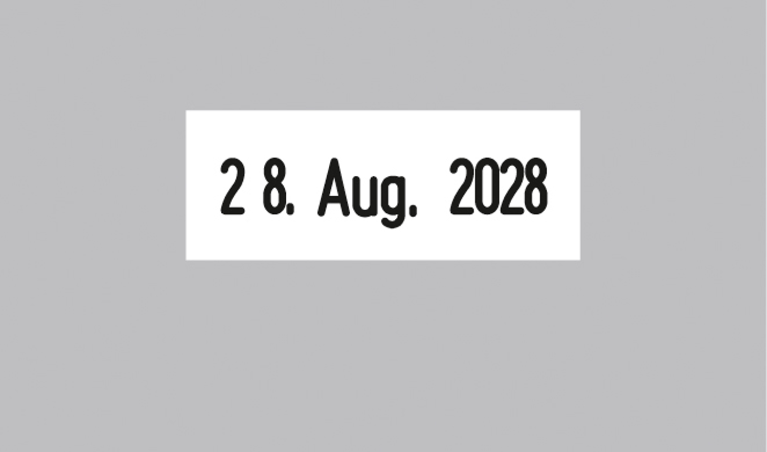 TRODAT Professional 5460 Textplattenstempel mit Datum (4 mm, Monat in Buchstaben). Metallstempel aus Edelstahl. Dieser Stativ-Selbstfärbestempel wird ohne Textplatte geliefert und kann individuell mit einer Textplatte versehen werden. Die Datumsverstellung erfolgt mittels Kunststoffrädern. Die patentierten High-Performance Datumsbänder sowie die Bandabdeckung garantieren eine saubere Handhabung bei der Datumsverstellung. Das mitgelieferte trodatkissen ist schwarz. Größe 9,1 x 5,3 x 15,5 cm, Abdruckgröße max. 5,6 x 3,3 cm. 10 Jahre Herstellergarantie auf den Stempel bei sachgemäßem Gebrauch, exklusive Verbrauchsmaterialien wie trodatkissen und individueller Textplatte.