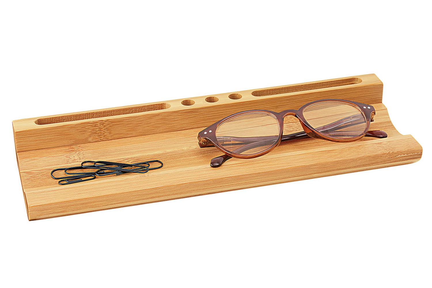 WEDO Tisch-Organizer mit Smartphone-Halter, eins von vielen außergewöhnlichen Accessoires aus der Bambus-Schreibtischgarnitur. Hält Handys bis zu einer Breite von 9,5 cm und Notizblocks. Drei Stiftehalterungen und die große Ablageschale für Brieföffner, Brille, Büroklammern o.ä. sorgen für übersichtliche Ordnung. Bambus wird als schnell nachwachsender Rohstoff nicht nur ökologischen Aspekten gerecht, sondern strahlt auch Wärme und Eleganz aus. Maße: ca. 28,0 x 9,0 x 3,8 cm. Lieferung im attraktiven Geschenkkarton.
