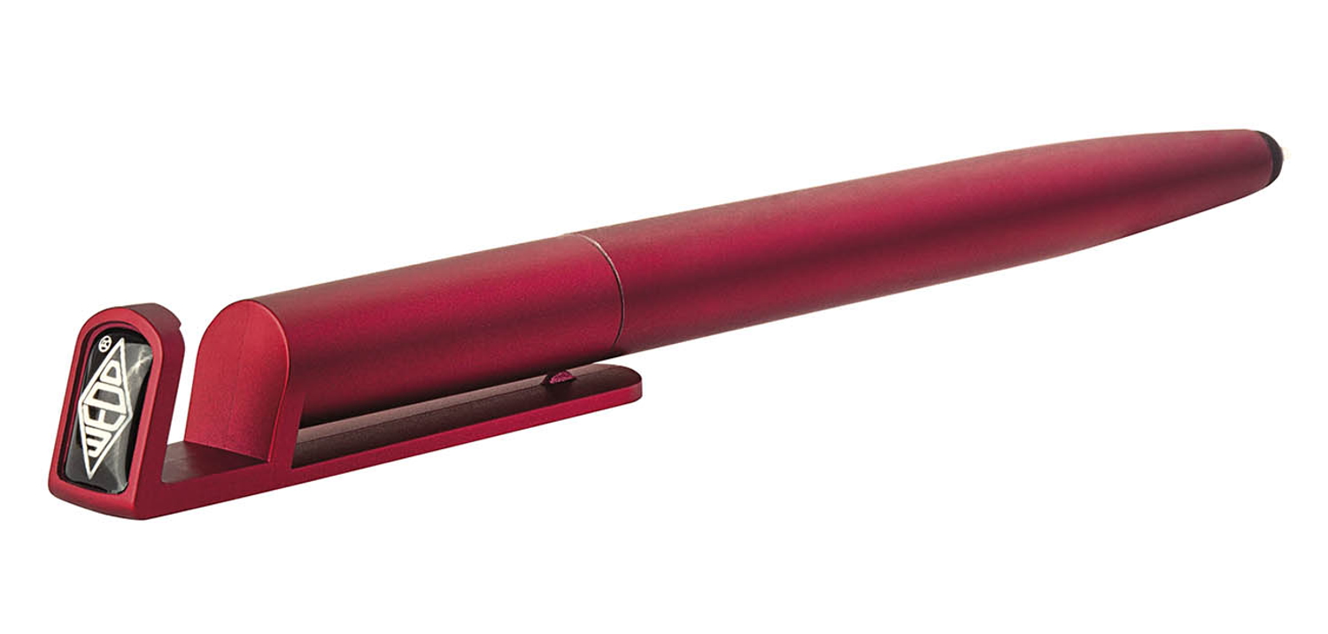 WEDO Touch Pen TRIPLE 3-in-1: Touch Pen mit Kugelschreiber und Smartphone-Halter. Der neue Touch Pen TRIPLE navigiert und schreibt nicht nur, er fungiert auch als Smartphone-Halter und kann unterwegs auf allen ebenen Flächen aufgestellt werden. So haben Sie das Display stets im Blick oder können gemeinsam mit Freunden Bilder und Videos anschauen. Die weiche Gummispitze navigiert auf allen Touch-Screens, die Kugelschreibermine wird per Drehmechanik ausgefahren. Eingesetzt ist eine blaue Großraummine aus Kunststoff im Parkerystem. Stiftlänge: ca. 14,7 cm. Lieferung im attraktiven Keildisplay mit 16 Touch Pens, je 4 x in Schwarz, Silber, Rot und Blau. Displaygröße inkl. Kopfschild: ca. 13,0 x 12,5 x 29,0 cm.