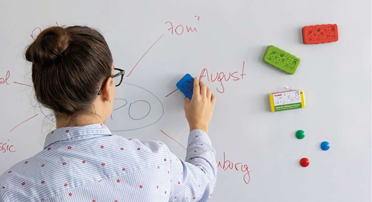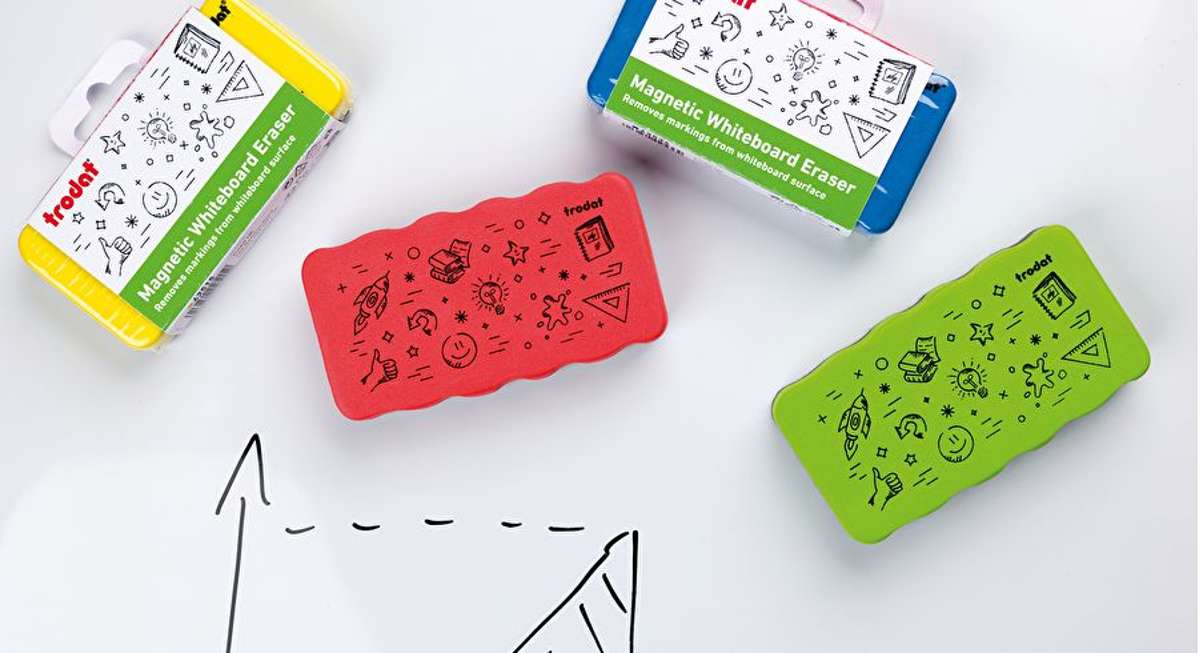 Trodat Magnetischer Whiteboard Schwamm. Ob Konferenzräume, Klassenzimmer oder auch zu Hause – der praktische Lösch-schwamm sorgt als freundlicher Farbtupfer für fröhliche Akzente am Arbeitsplatz, im schulischen und privaten Umfeld. Farbe: gelb mit attraktivem Design. Dank der ergonomischen Form passt der Schwamm in jede Hand und erleichtert das schnelle sowie effektive Löschen von Whiteboard-Notizen, Zeichnungen und Co. Maße: ca. 10,5 x 5,5 x 1,8 cm (L x B x H) Gewicht: 18 g.