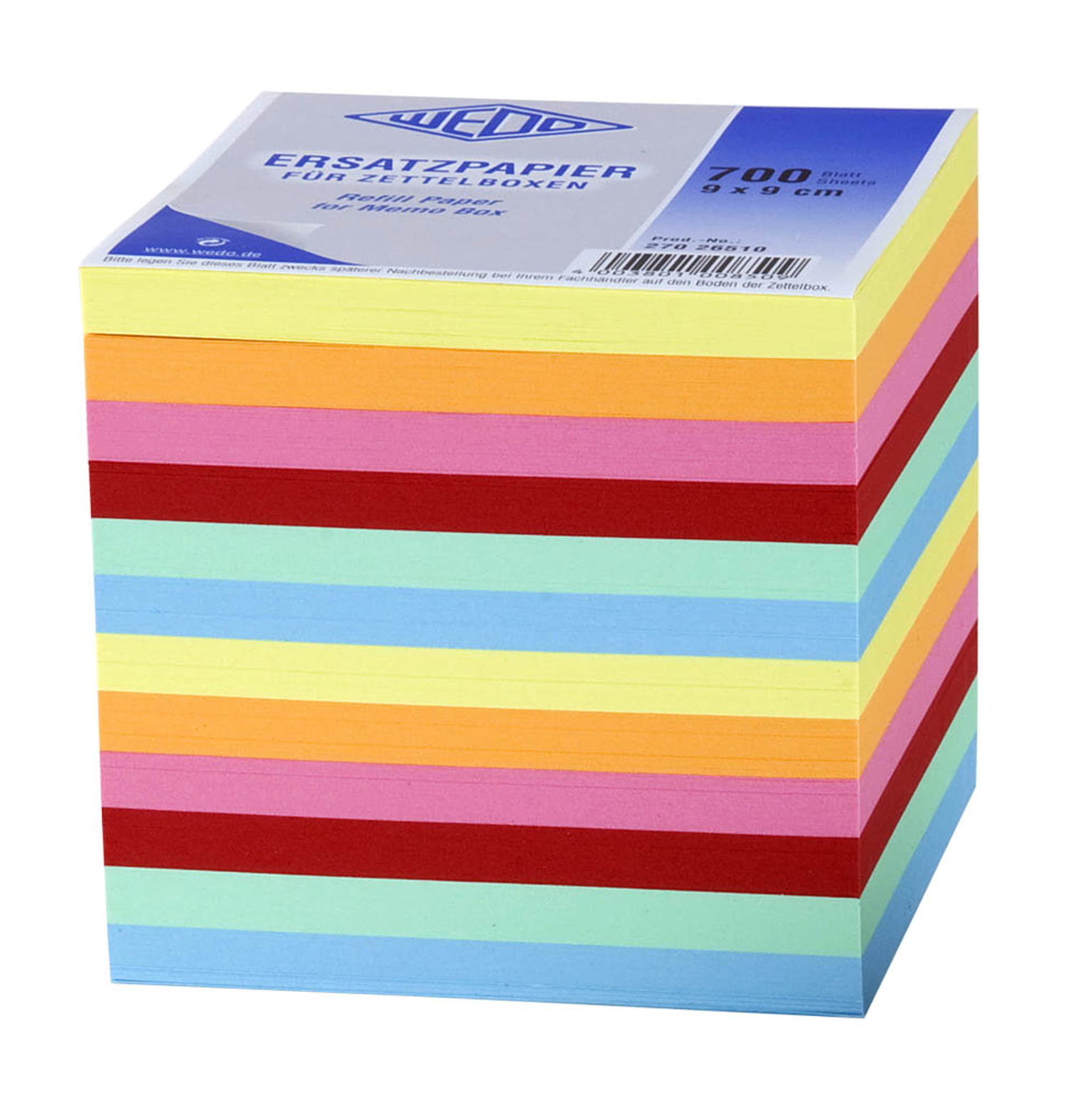 WEDO Ersatzpapier für Zettelboxen. Notizpapier 6-farbig, Größe: 9 x 9 cm, ca. 700 Blatt lose eingeschweißt.