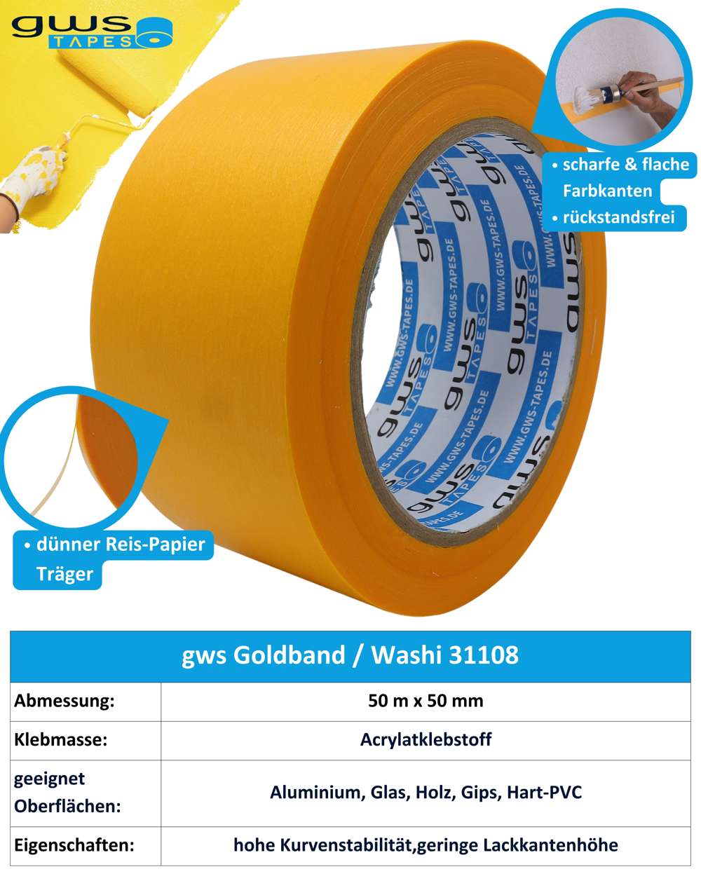 gws Goldband Washitape, PV2, 50 m x 50 mm, Orange