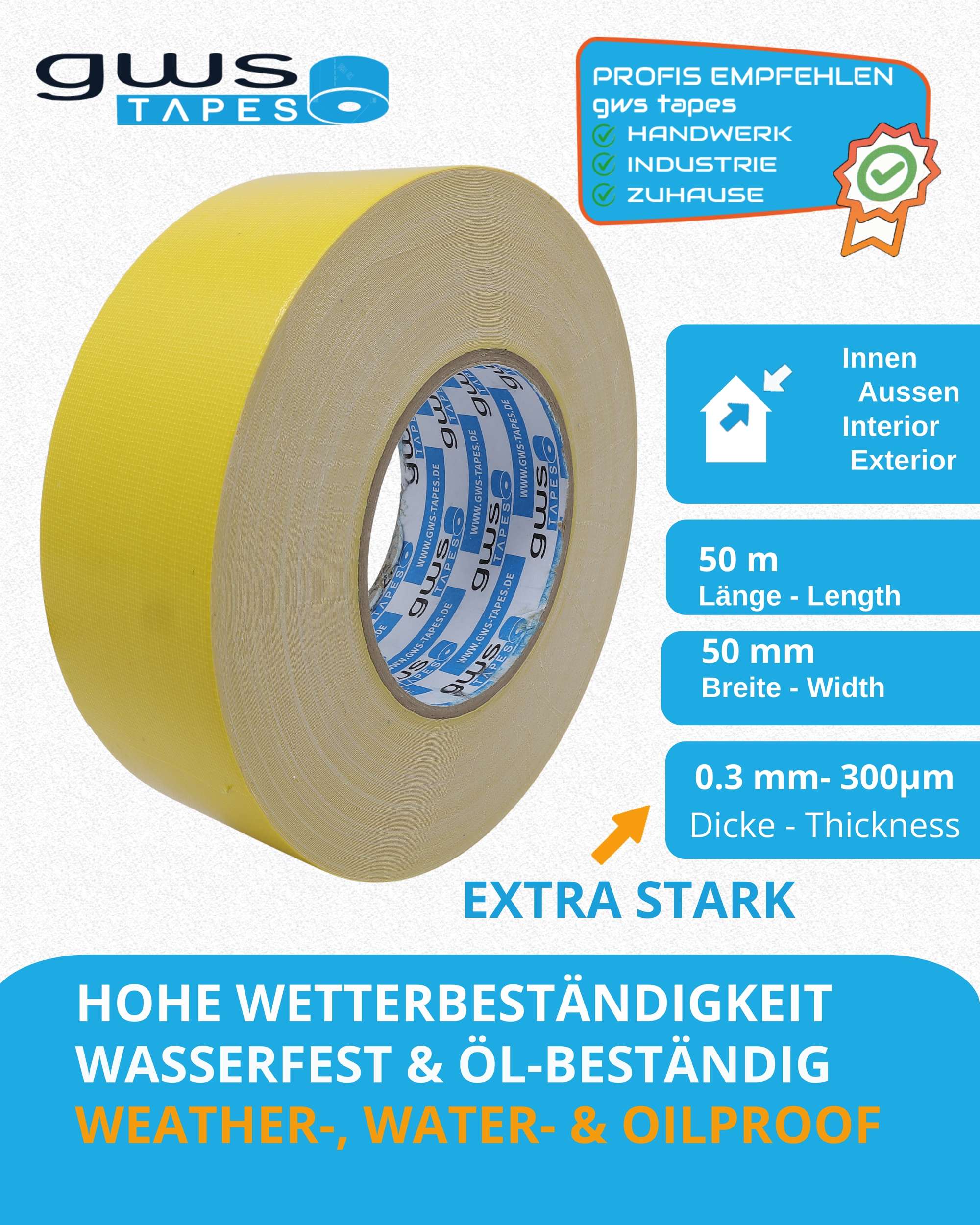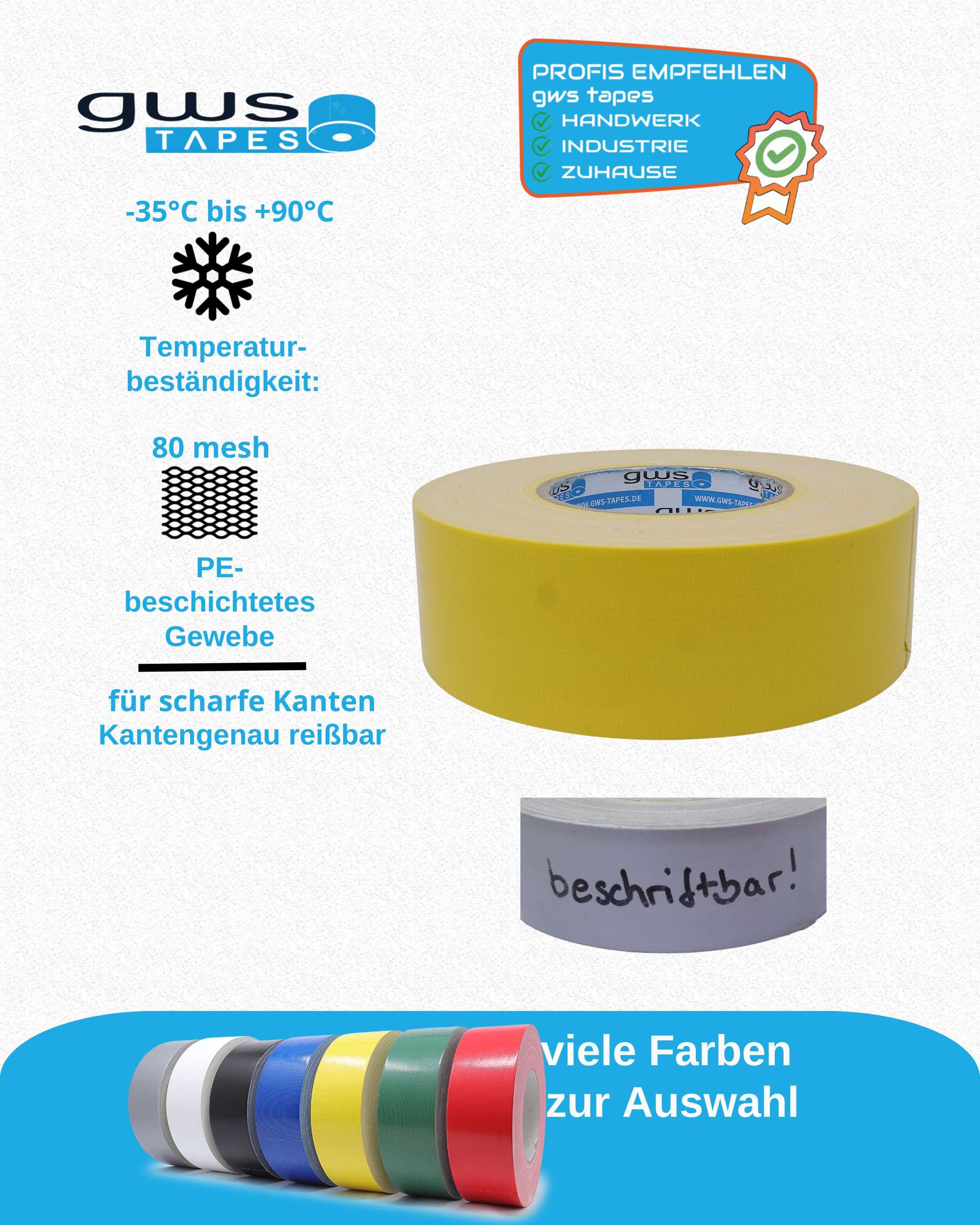 - PREMIUM QUALITÄT: Das hochwertige gws Premium Gewebeband begeistert mit seiner hohen Beständigkeit und seiner erstklassigen Klebkraft. Durch seine Beschriftbarkeit eignet es sich auch hervorragend als Markierungsband. Wählen Sie zwischen verschiedenen Farben und Längen/Breiten!