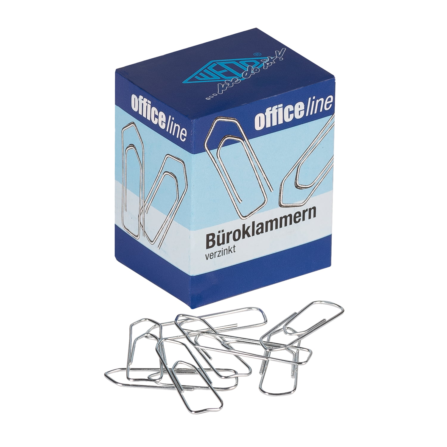 WEDO Büroklammer 32 mm spitz. Aus Metall, glanzverzinkt, Schachtel mit 100 Stück.