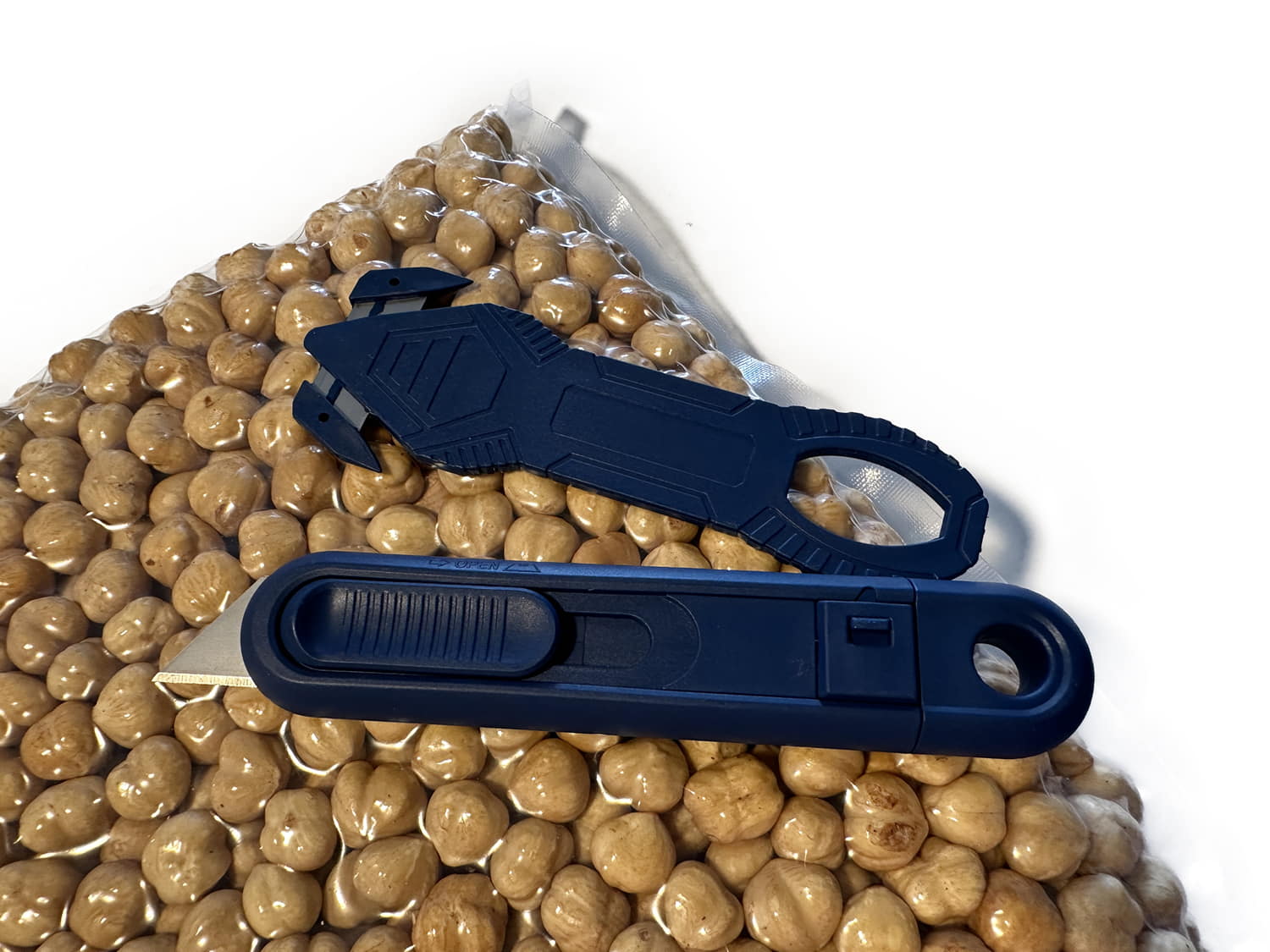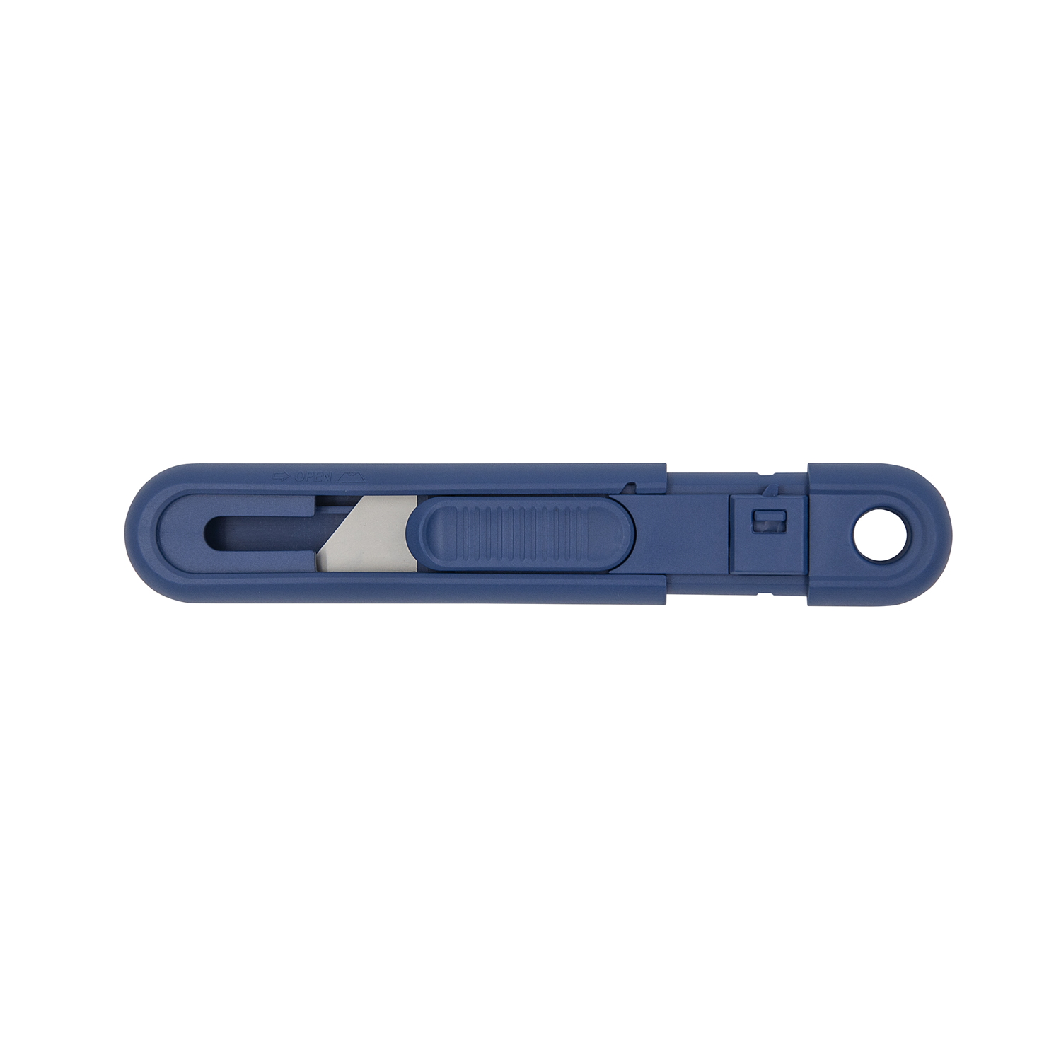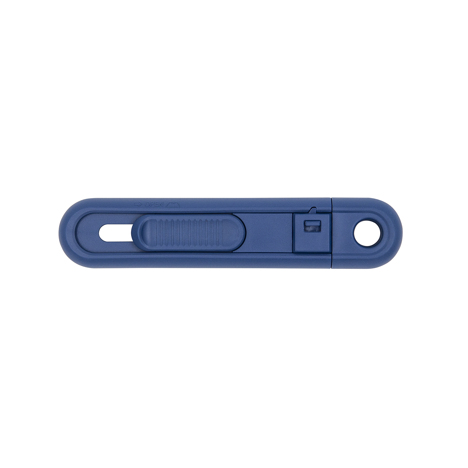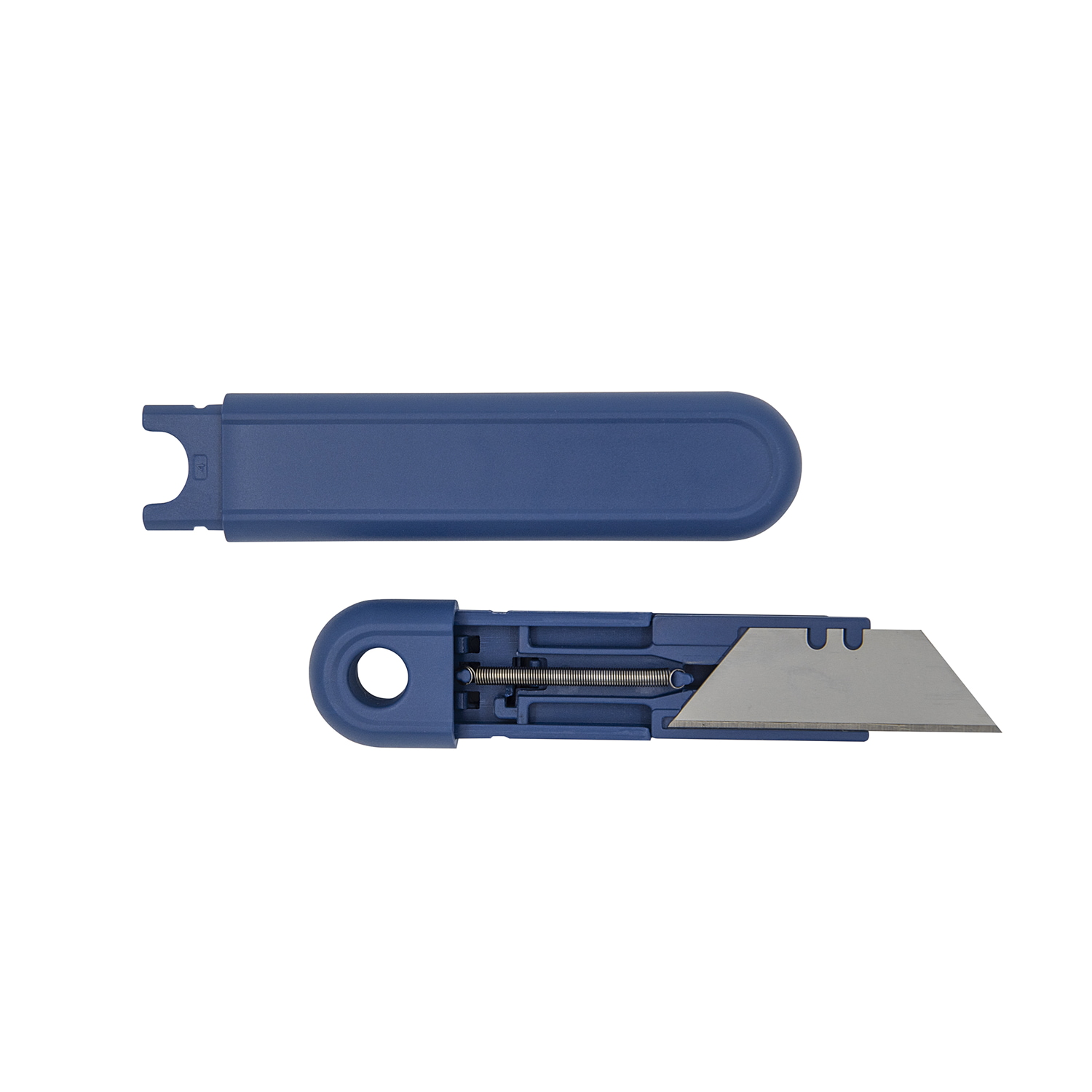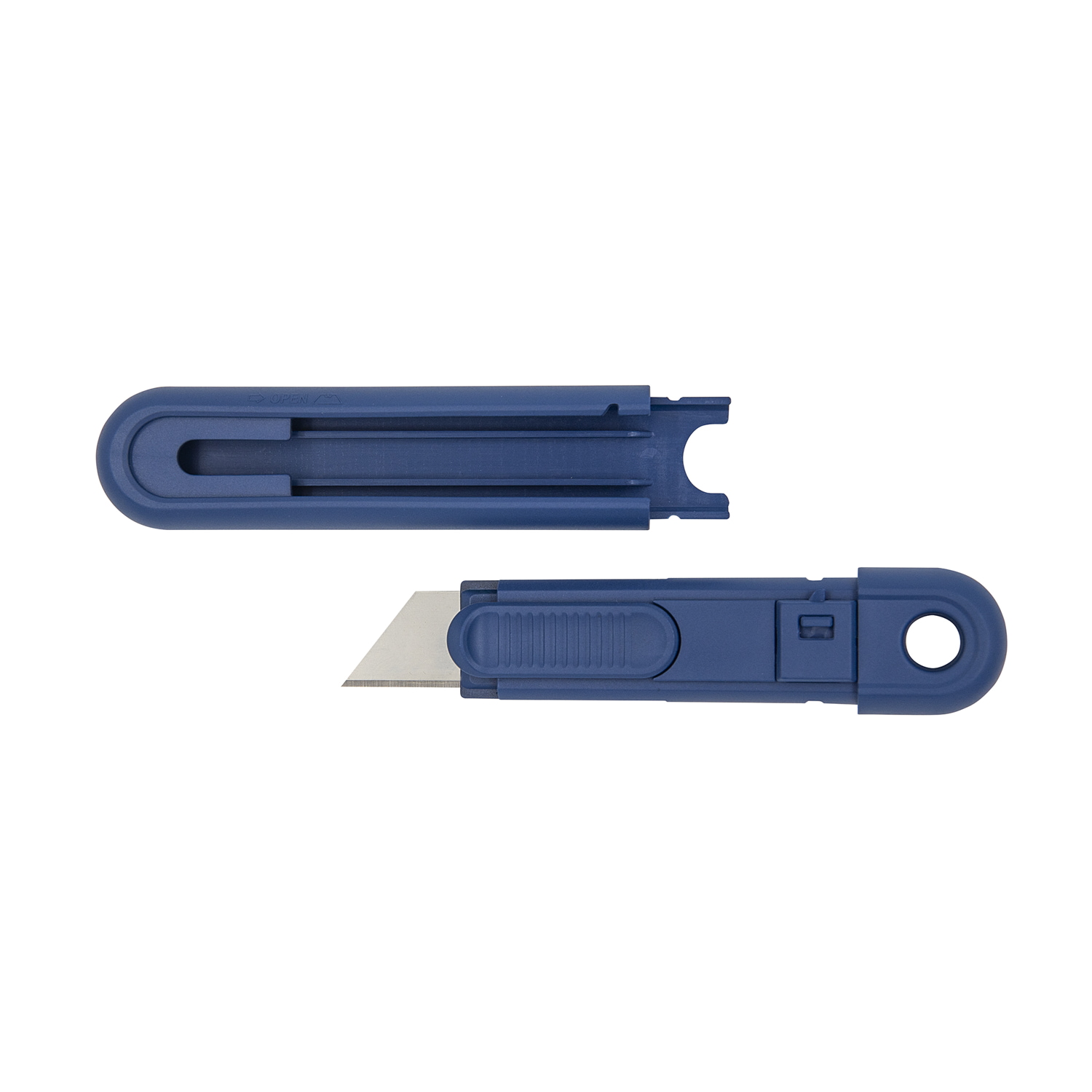 WEDO MetDetec 811 - kleiner, handlicher Safety Cutter für den Lebensmittelbereich, mit automatischer Klingenrückzug, federbelastete Trapezklinge, ergonomisches Kunststoffgehäuse aus magnetischem Kunststoff, detektierbar und x-ray fähig, TÜV/GS zertifiziert, Lieferung mit 1 Trapezklinge aus Edelstahl eingesetzt. Maße: ca. 13,5 x 2,8 x 1,2 cm, Gewicht 38 g, Klingenaustritt: 1,7 cm
