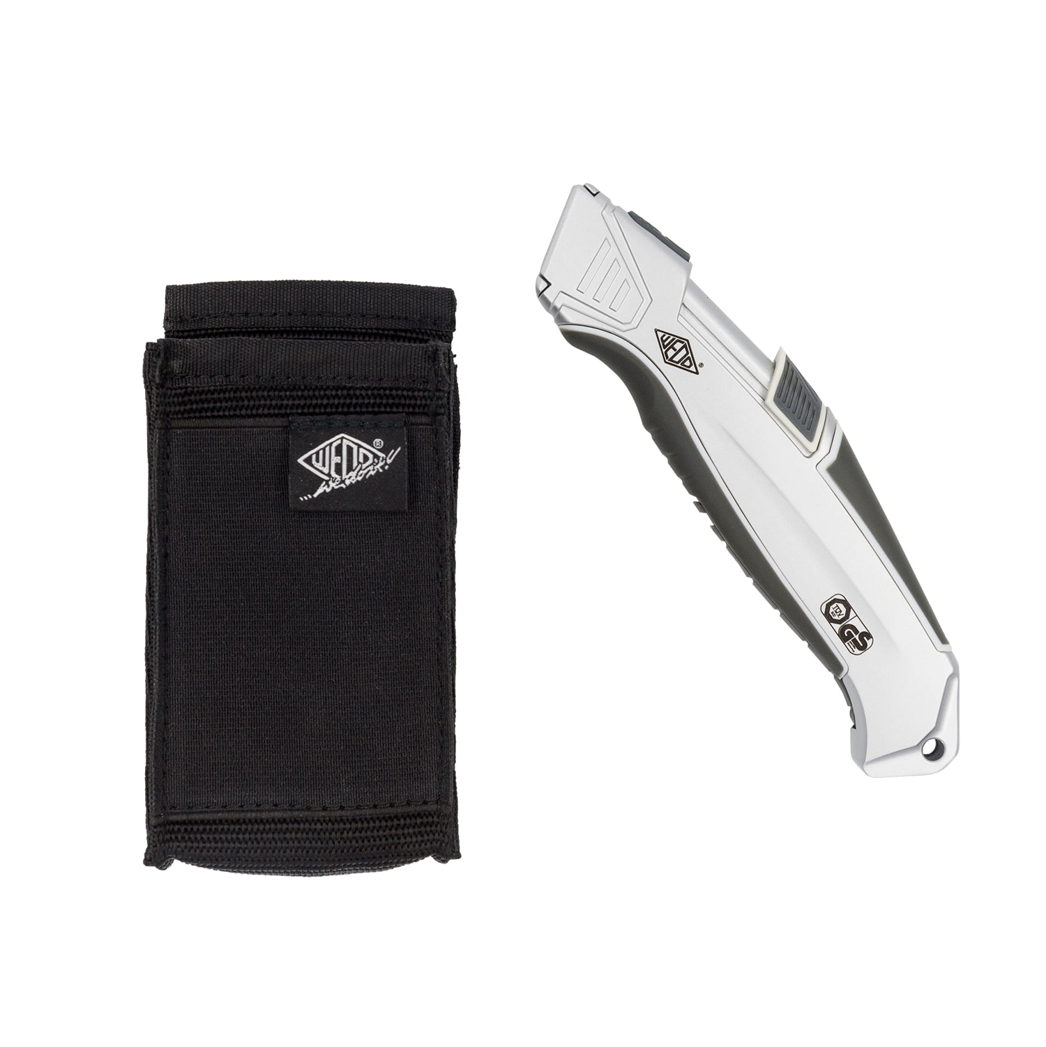 WEDO Cutter-Gürteltasche für alle Cutter passend, mit Befestigungsclip für Gürtel oder Hosenbund, aus strapazierfähigem Polyestergewebe mit verstärkten Kanten. Zwei Innenfächer, ein flaches Außenfach für Klingenmagazin oder ähnliches. Farbe: schwarz, Maße: 6,80 x 3,90 x 13,40 cm, max. Breite für Gürtel zum Einziehen: 4,2 cm, Lieferung mit Hangtag