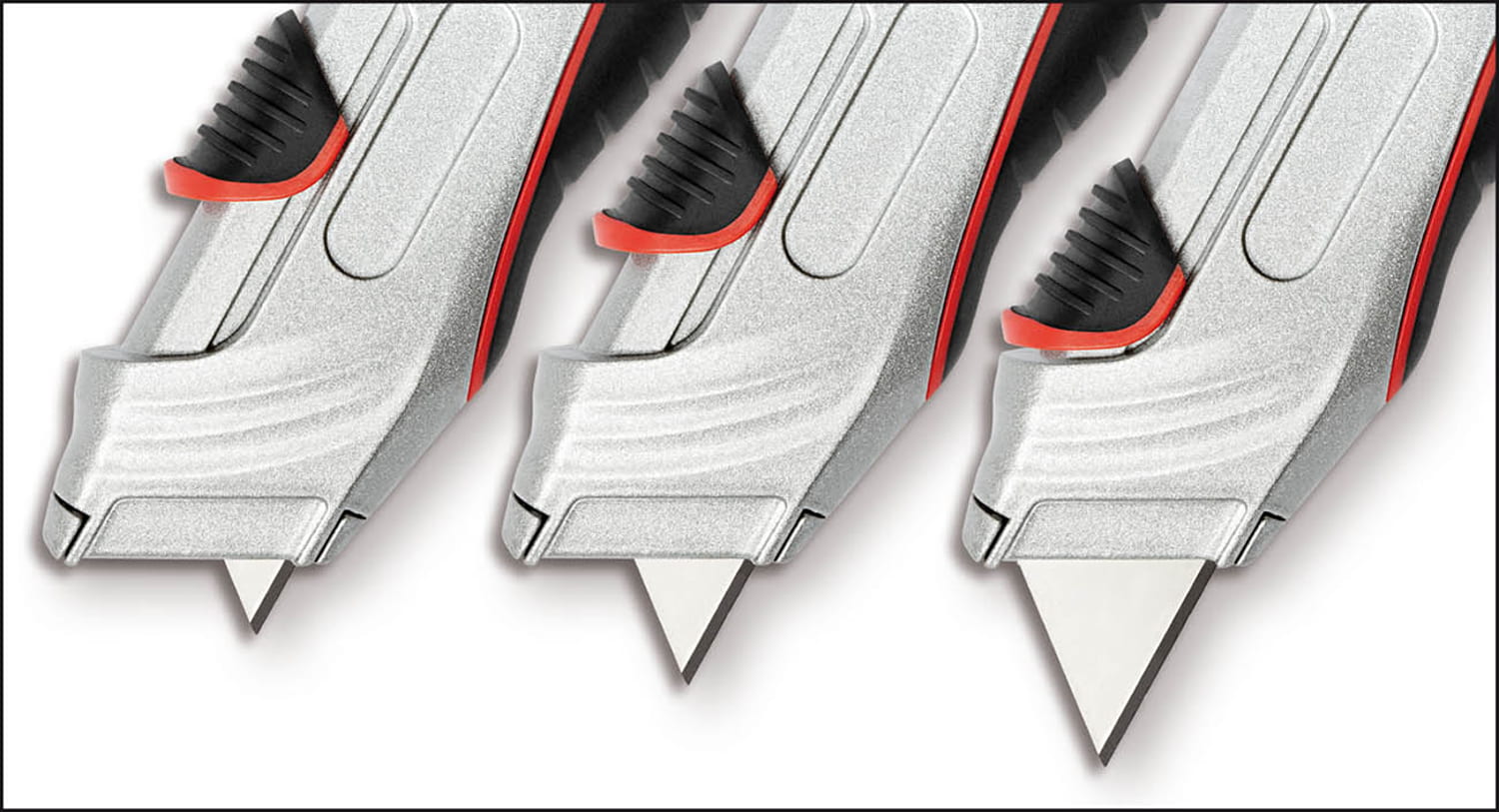 WEDO Safety Cutter Profi mit 3-Stufen-Vorschub - bietet Sicherheit durch automatischen Klingenrückzug. Die Klinge ist federbelastet und zieht sich automatisch zurück, sobald sie keinen Kontakt mehr mit dem Schneidegut hat (Schieber während des Schneidens nicht festhalten). Über ein Einstellrad ist die Schnitttiefe in 3 Stufen wählbar - 9 mm, 15 mm und 25 mm - um z. B. Beschädigungen des Kartoninhalts zu vermeiden. Der ergonomisch geformte Metallgriff mit gummierter Griffzone liegt sicher in der Hand. Durch die Positionierung des Klingenschiebers auf dem Griffrücken kann der Cutter sowohl von Rechts- als auch von Linkshändern benutzt werden. Mit Aufhängeloch. Einfacher Klingenwechsel mit Sicherungsriegel. TÜV/GS-geprüft. Maße: ca. 15,6 x 2,0 x 4,1 cm, Farbe: silber/schwarz. Lieferung mit 5 hochwertigen Trapez-Ersatzklingen aus SK5-Carbonstahl.
