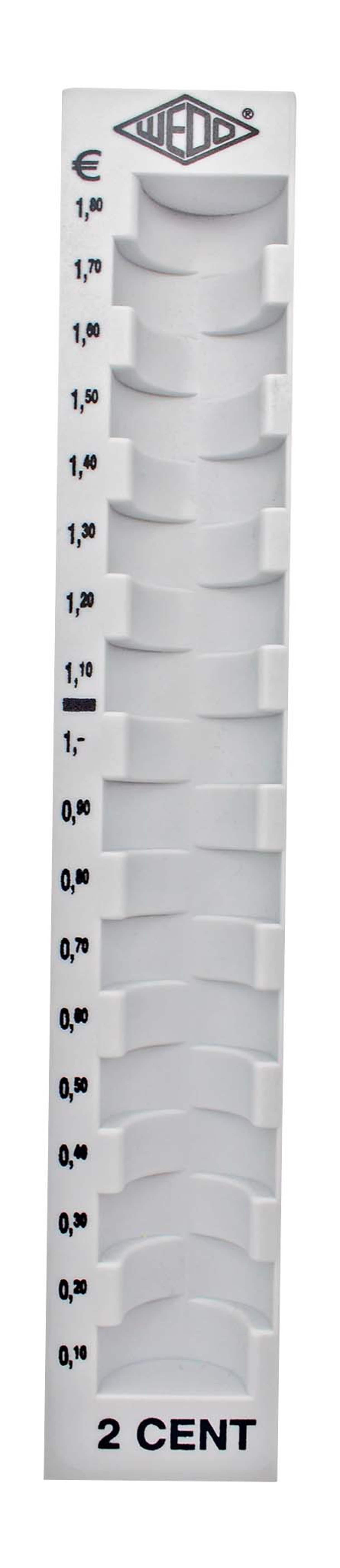 WEDO Münzrille 0,02 € für 90 Münzen. Gefertigt aus schlagfestem Kunststoff. Die Wertskala gibt einen schnellen Überblick über den Münzbestand. Größe 18,0 x 4,5 x 3,2 cm.