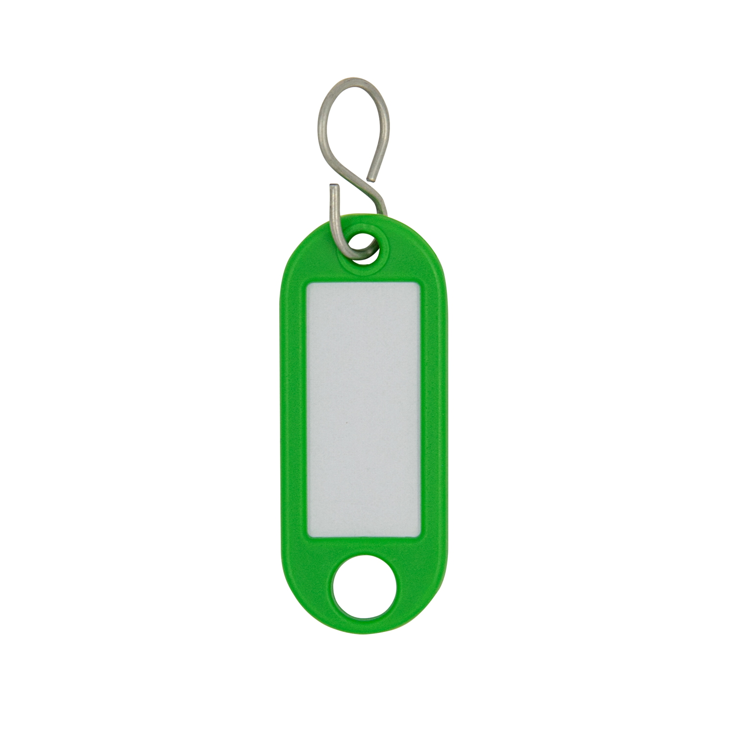 WEDO Schlüsselanhänger grün. Aus Kunststoff, mit S-Haken, zur übersichtlichen Kennzeichnung Ihrer Schlüssel. Die Etiketten lassen sich leicht beschriften und auswechseln. Anhängergröße: 5,2 x 2,1 x 0,3 cm. Gepackt zu 10 Stück.