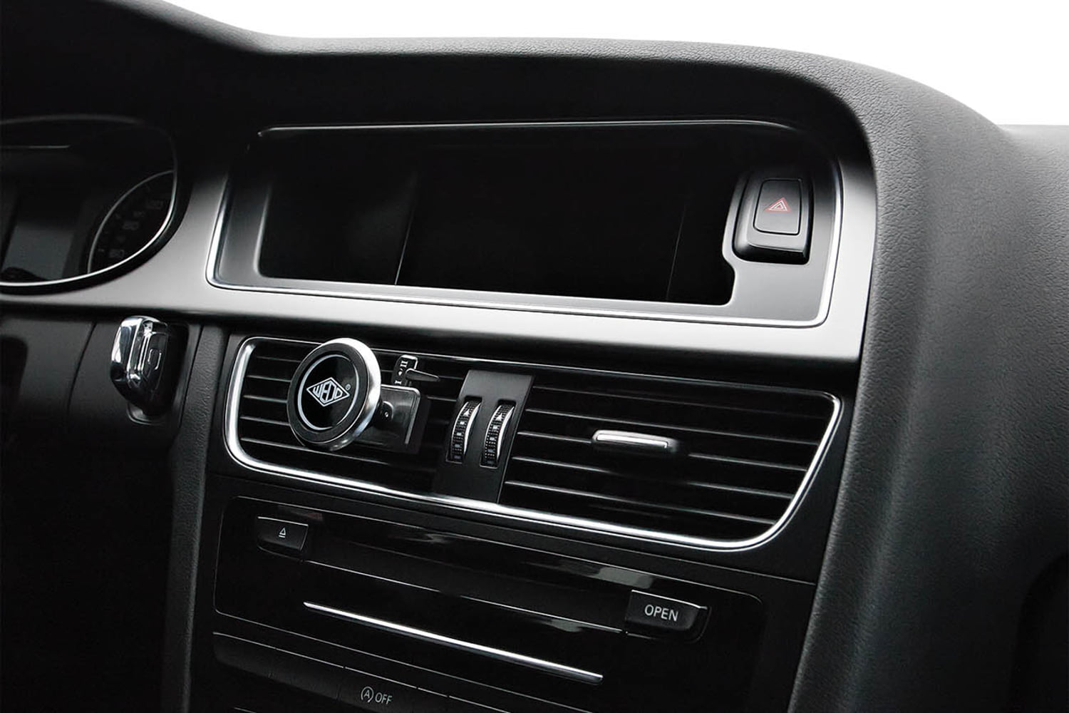 WEDO DOCK-IT Premium - der edle Smartphone-Magnethalter für KFZ-Lüftungsschlitze. Die clevere Mini-Halterung für alle Smartphones mit frei einstellbarem Blickwinkel dank Metallkugel! Schnell anzubringen – der gummierte Stecker mit Kippschalter lässt sich in 2 Stufen (1,5 - 2,5 mm und 2,5 - 3,5 mm) auf die Dicke der Lüftungslamelle einstellen und sorgt so für eine sichere und stabile Fixierung der Smartphone-Halterung. Der starke Magnet mit Soft-Touch-Oberfläche hält markenunabhängig jedes Smartphone in der gewünschten Position. Alle Funktionen des Smartphones sind frei zugänglich. Drei dünne Metallplättchen mit unterschiedlichen Fixierungsmöglichkeiten am Smartphone oder Hardcase werden mitgeliefert: mit Gel-Pad-Haftung für rückstandsfreies Entfernen, selbstklebend oder ohne Klebstoff zum Einlegen zwischen Smartphone und Hardcase. Die Haftkraft des Gel-Pads lässt sich durch Säubern unter fließendem Wasser immer wieder reaktivieren (Oberfläche nicht abtrocknen oder abwischen). Magnethalter-Maße: Durchmesser 4,2 cm, Länge 6,8 cm, Farbe: silber/schwarz. Lieferung im attraktiven Geschenkkarton mit Gebrauchsanleitung. Hinweis zur Nutzung mit Samsung S4 und S4 Mini: Das Metallplättchen unbedingt in größtmöglichem Abstand zum HALL-Sensor des Telefons montieren. Das verhindert, dass das S4 auf die Magnethalterung reagiert und in den Standby-Modus wechselt.