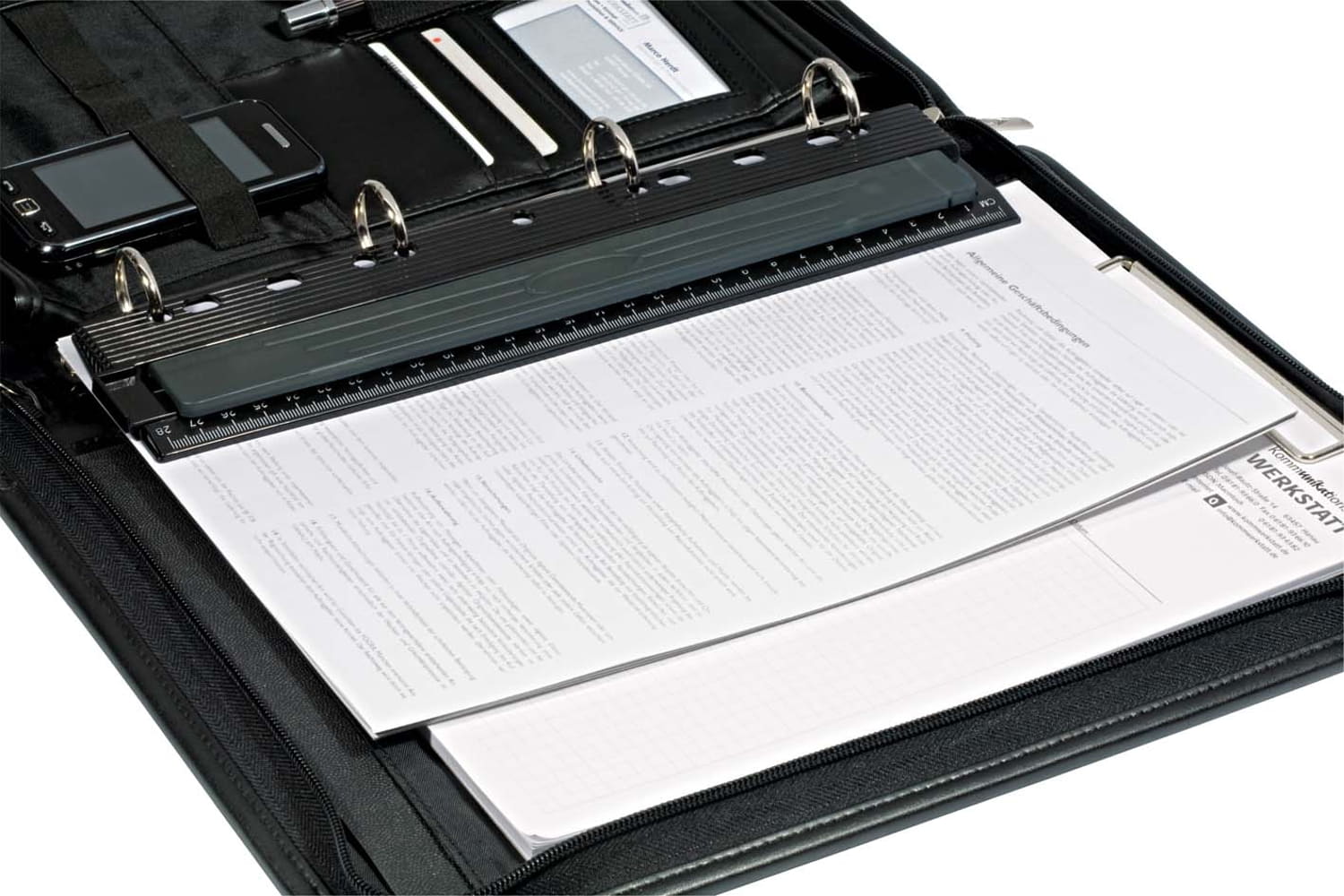 WEDO Taschenlocher Business mit 4fach-Lochung. Dieser flache Locher mit robuster Metallschiene ist der perfekte Profi-Locher für unterwegs. Er lässt sich leicht verstauen und dank Universalllochung auch überall abheften. Ausgestattet mit Anlegekante, vier Metallstanzen für DIN-Lochungen und einem praktischen Auffangbehälter der Papierschnipsel. Bis zu 3 Blätter (80 g/qm) können auf einmal gelocht werden. Durch die 28 Skala ist der Taschenlocher zusätzlich als abheftbares Lineal nutzbar. Maße: 29,7 x 6,6 x 1,4 cm, Farbe: schwarz. Lieferung im bebilderten Einzelkarton mit SB-Aufhängung.